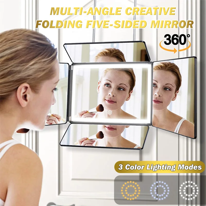 5 방향 거울, 셀프 헤어 커팅용 이발사 거울, 남성용 360 ° 면도 거울, 브레이딩용 높이 조절 메이크업 거울