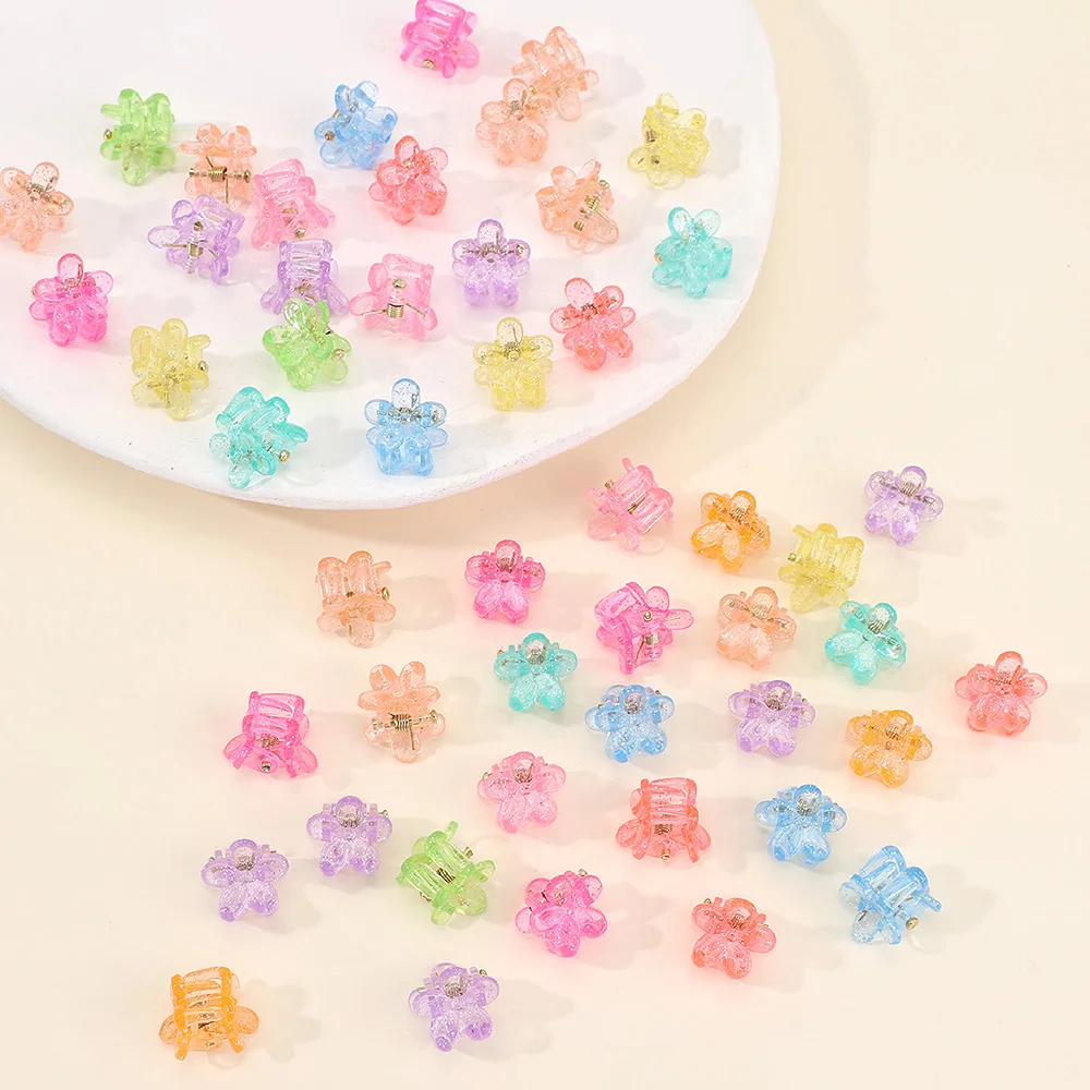 50Pcs 아기 소녀 머리핀 10 여러 가지 빛깔의 색상 미니 머리 발톱 클립 작은 작은 꽃 자용 어린이 학교 모자를 쓰고 있죠 액세서리