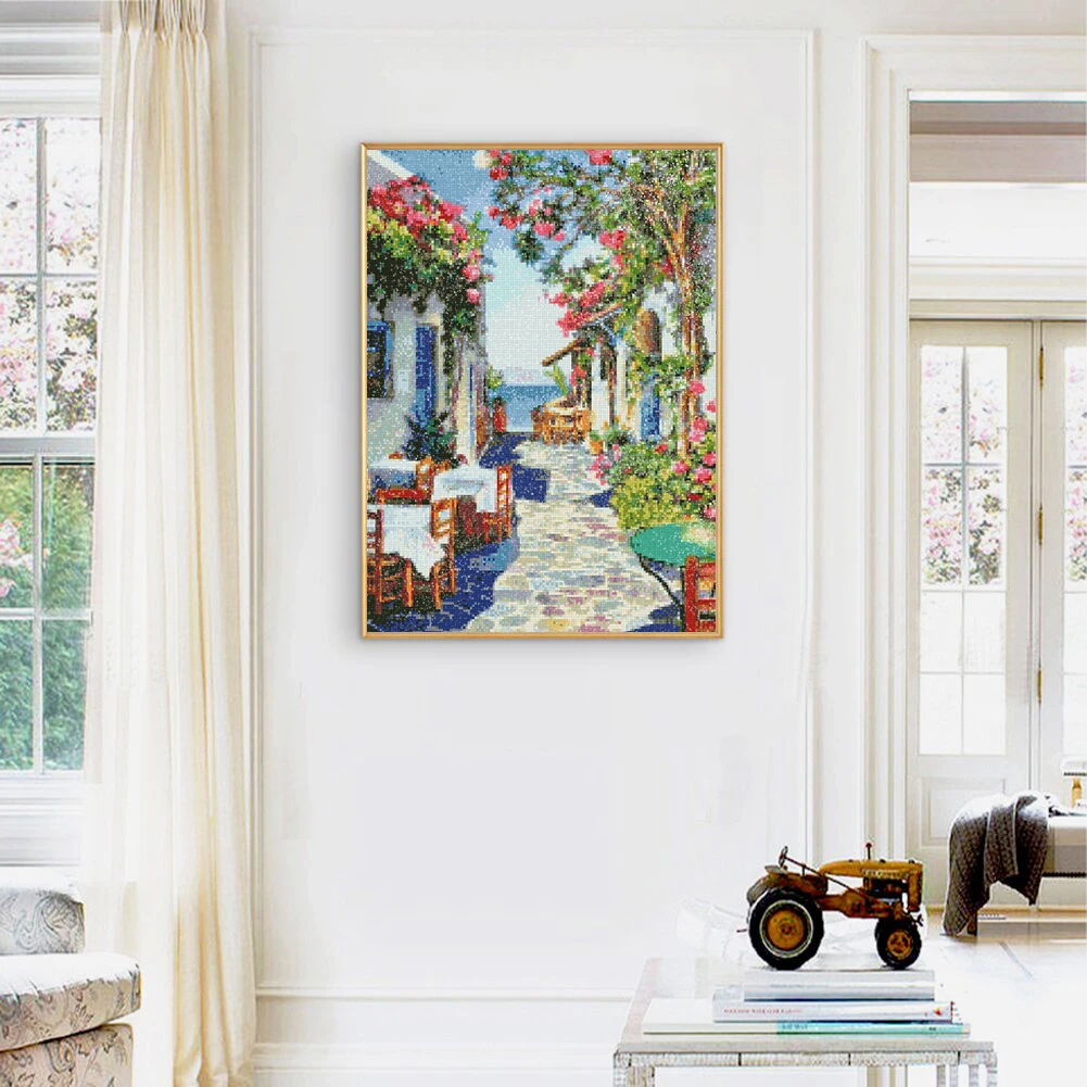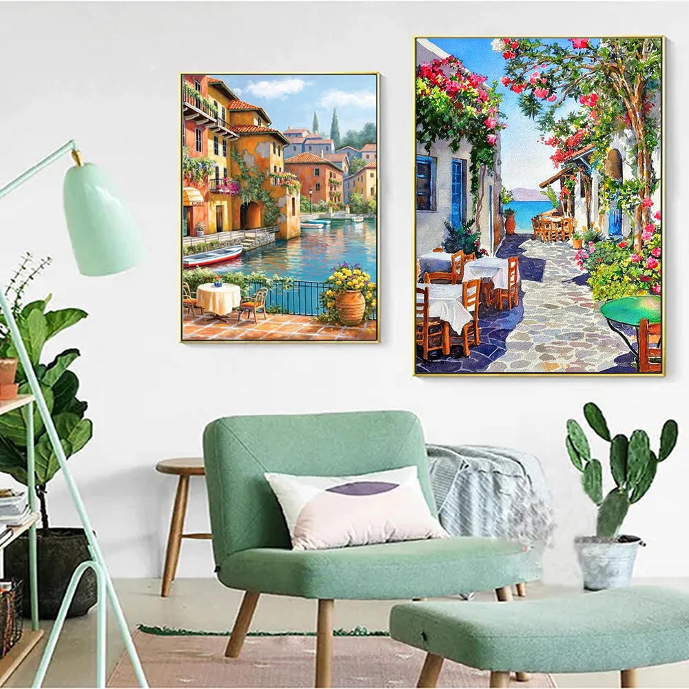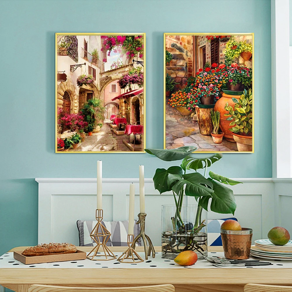 5D Diy 다이아몬드 페인팅 스트리트 뷰 전체 사각형 라운드 다이아몬드 자수 풍경 모자이크 라인 석 그림 홈 인테리어