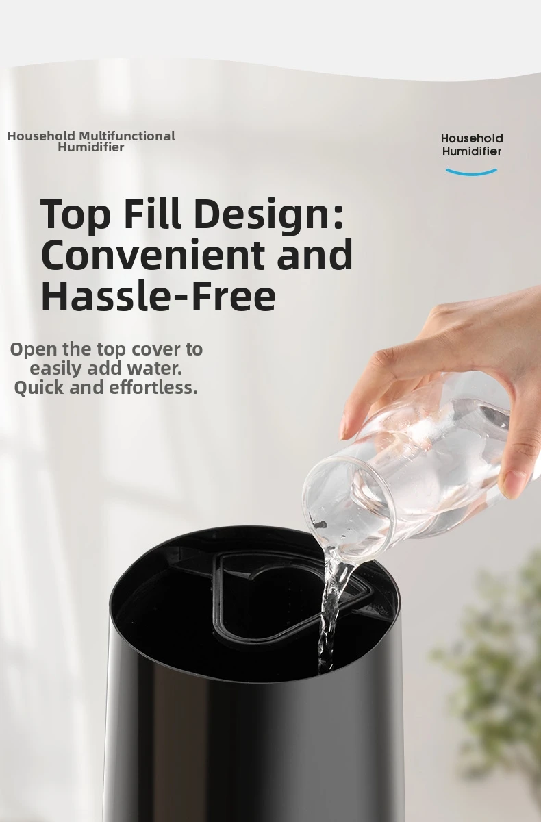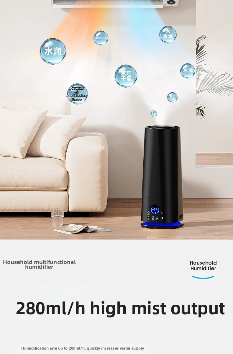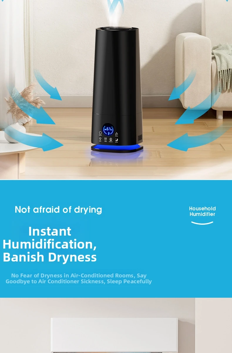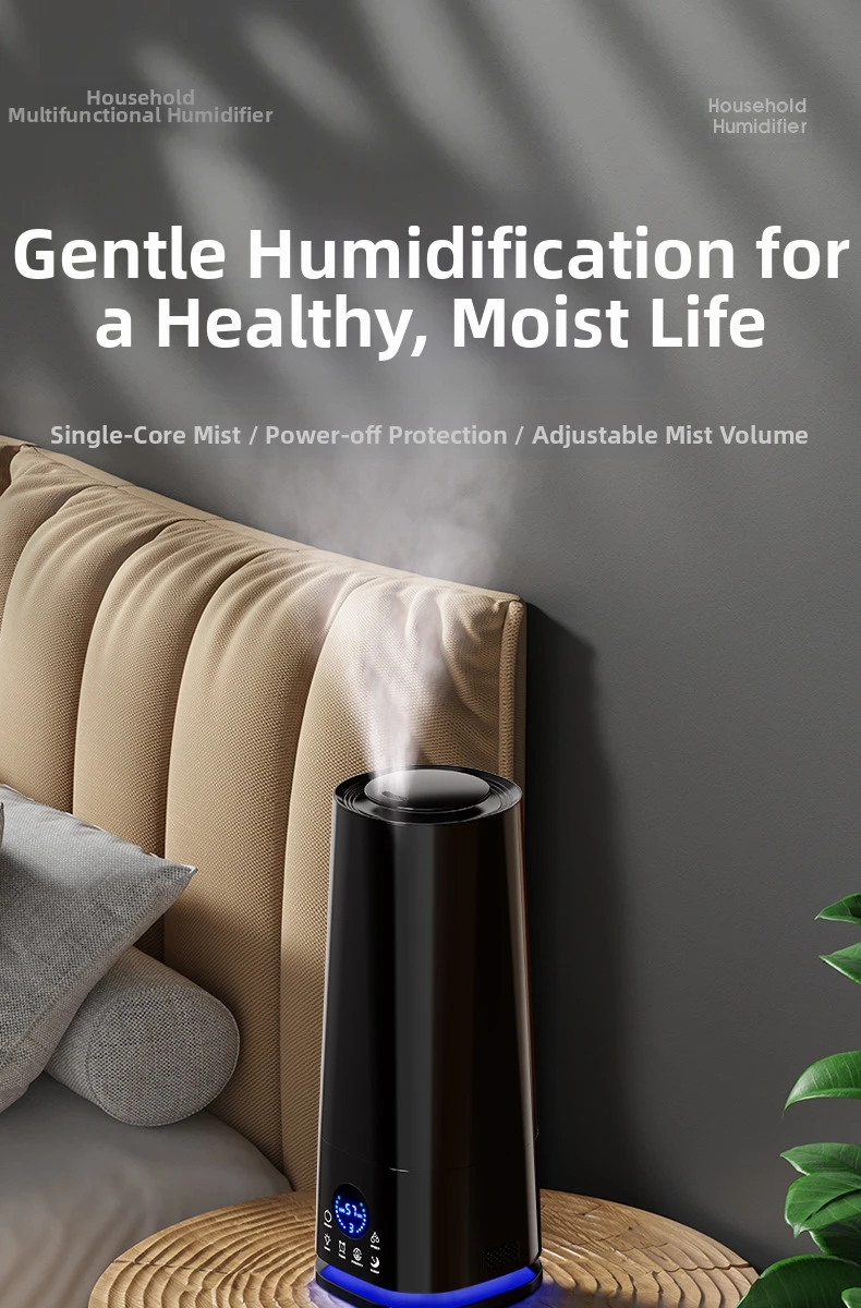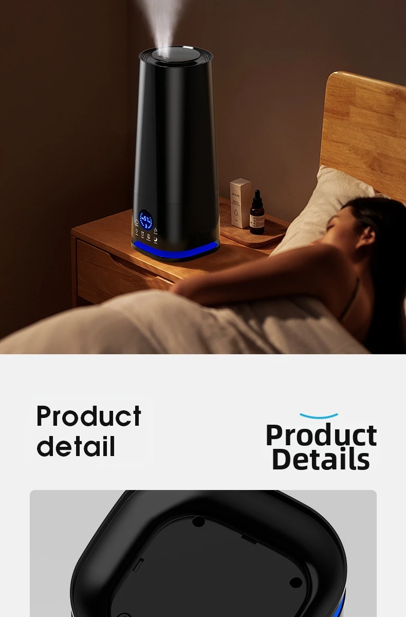 5L 대용량 가습기, 가정용 블랙 초음파 쿨 미스트 가습기, 자동 꺼짐, 야간 조명, 침실용 조용한 가습기