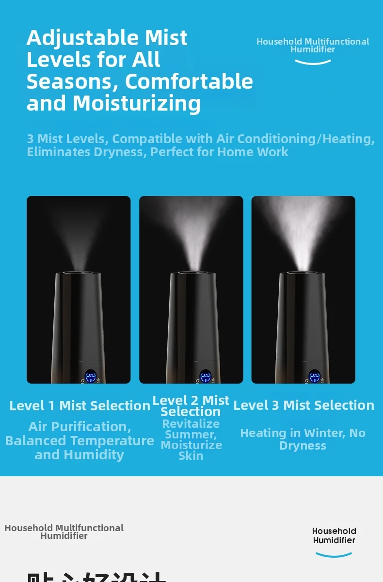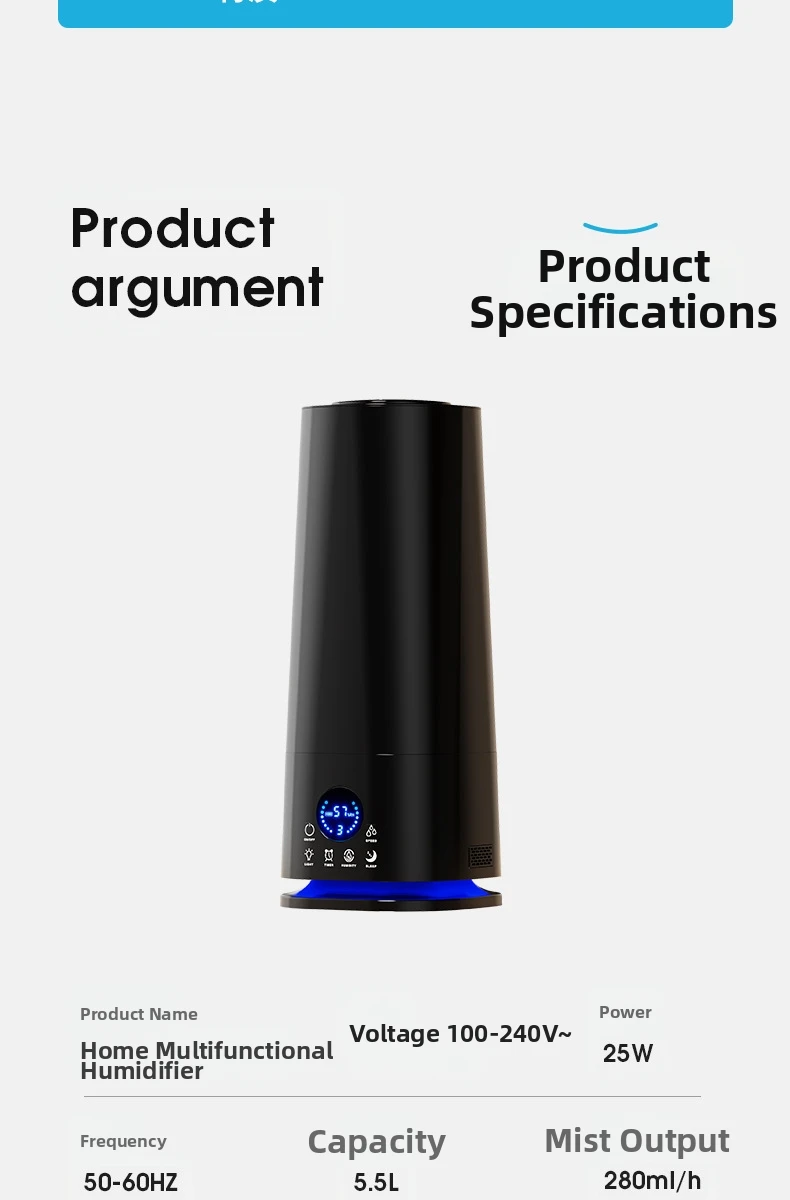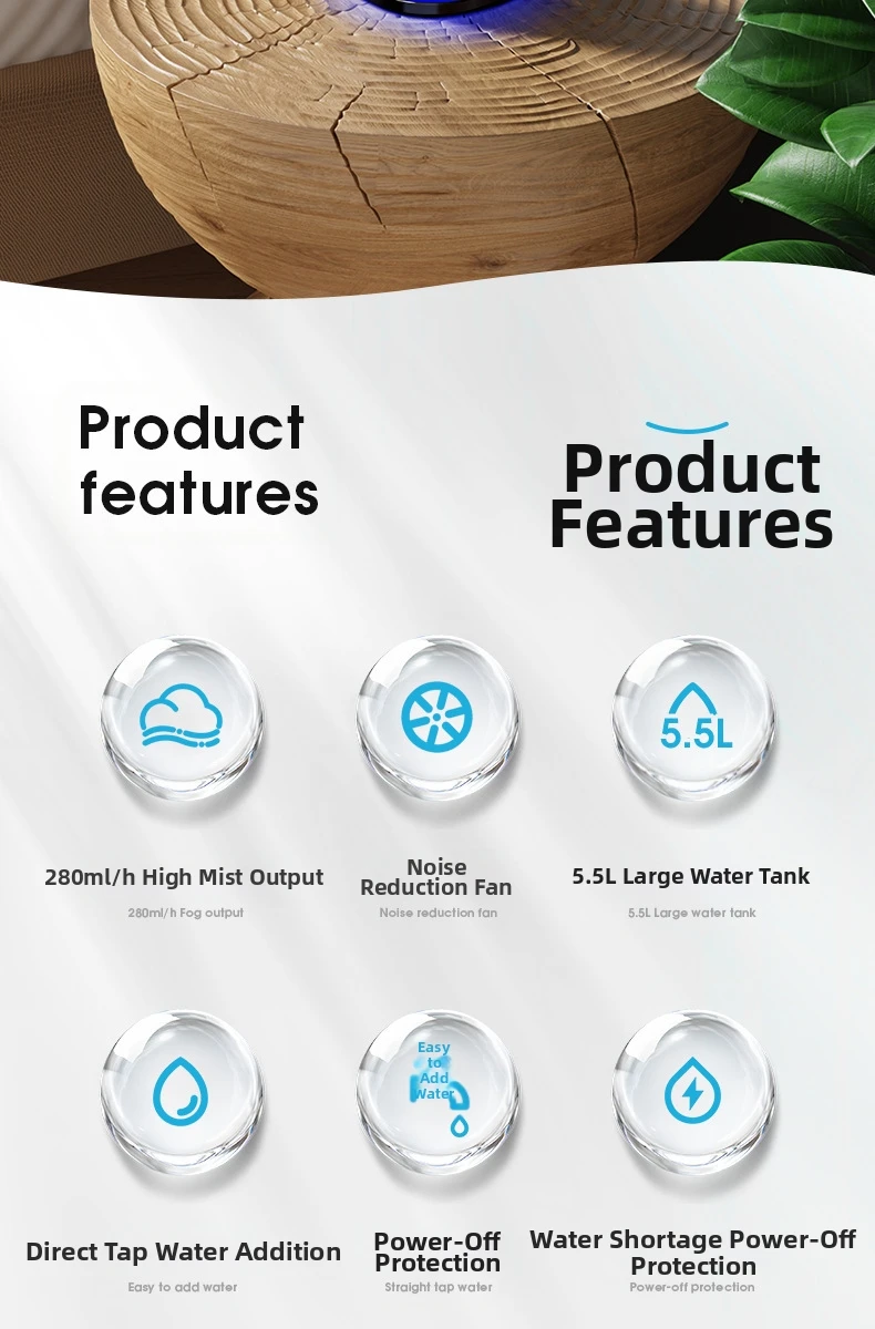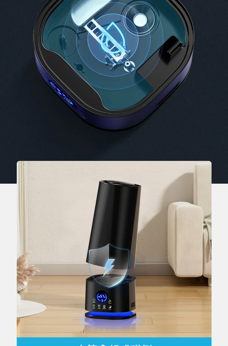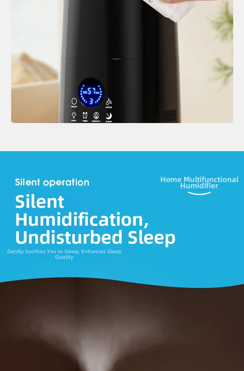 5L 대용량 가습기, 가정용 블랙 초음파 쿨 미스트 가습기, 자동 꺼짐, 야간 조명, 침실용 조용한 가습기