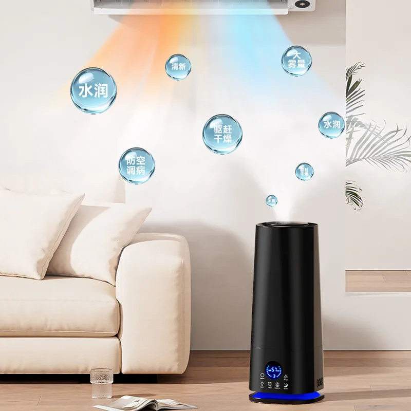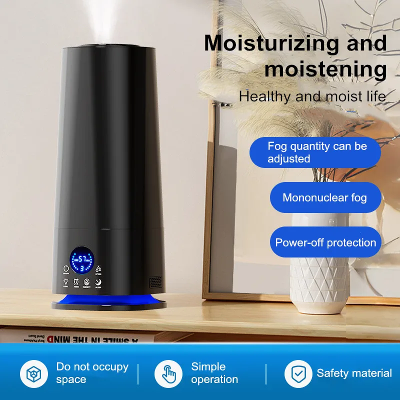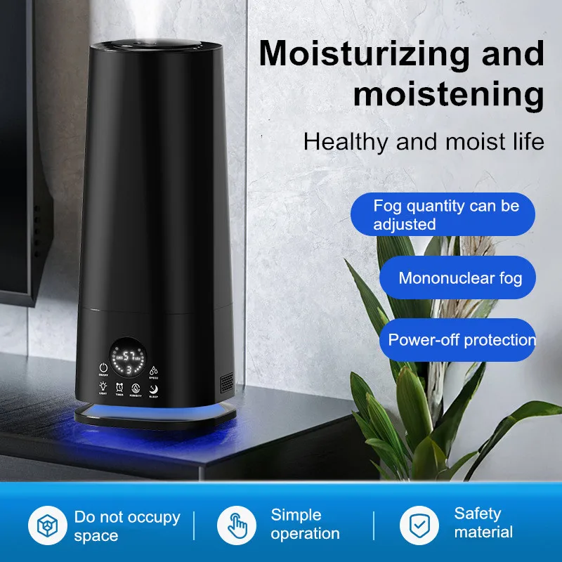 5L 대용량 가습기, 가정용 블랙 초음파 쿨 미스트 가습기, 자동 꺼짐, 야간 조명, 침실용 조용한 가습기
