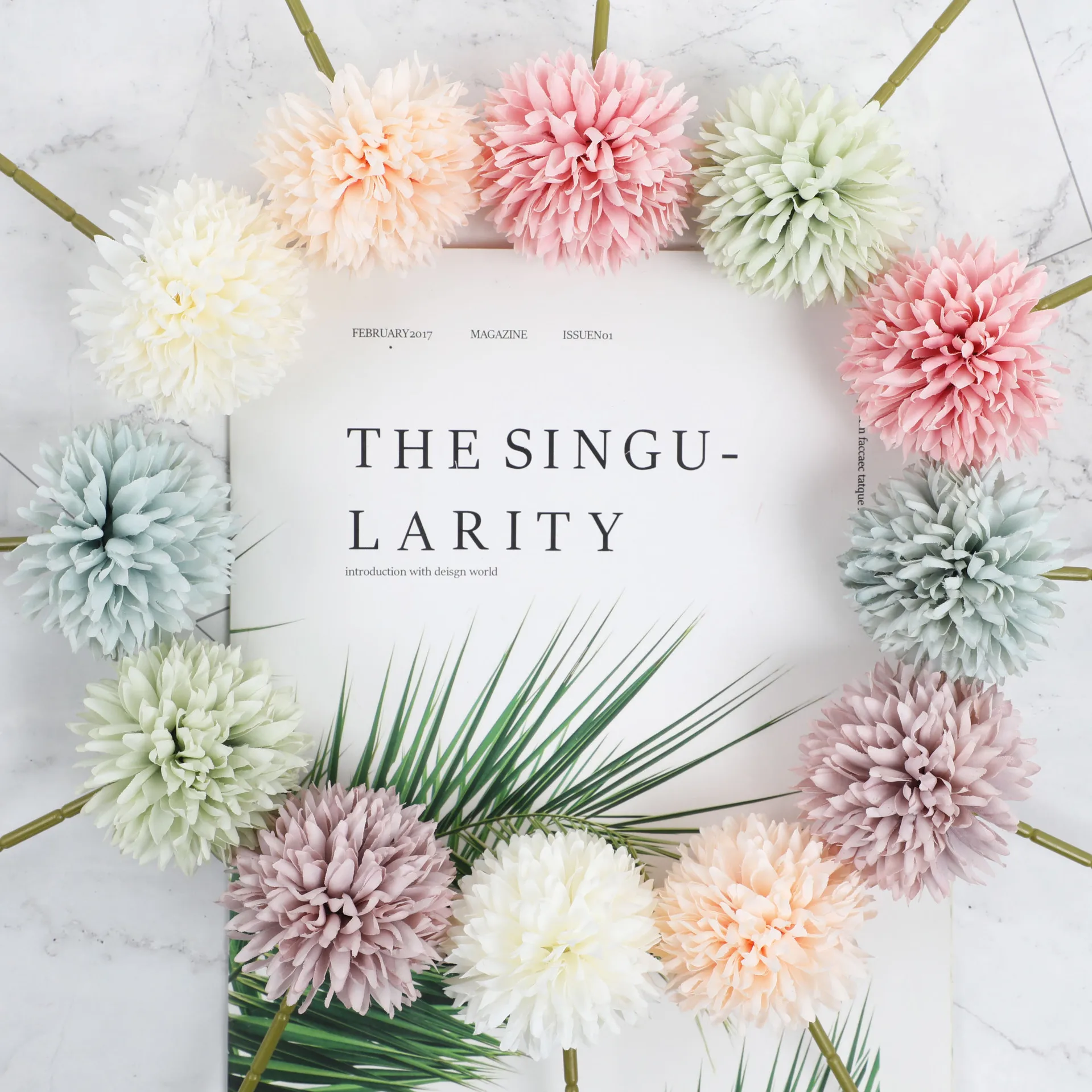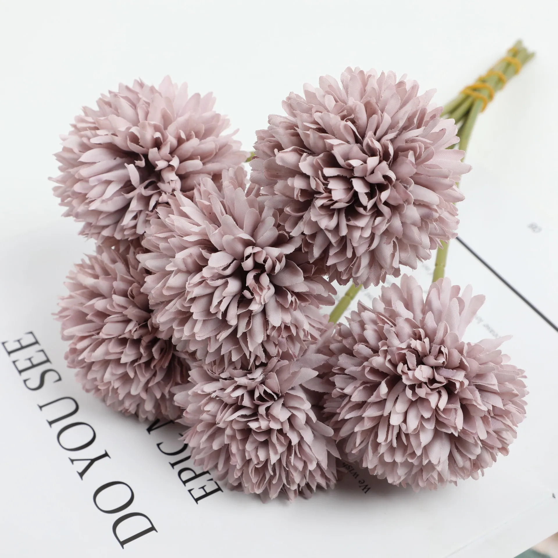 6개의 인공 민들레와 국화 공 부케 – 집, 사무실, 커피숍, 정원 파티, 웨딩 장식에 적합