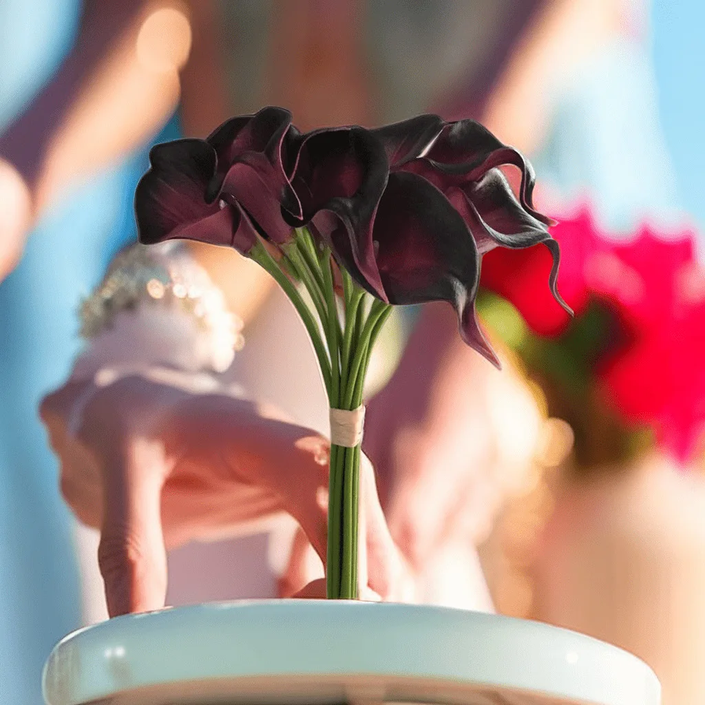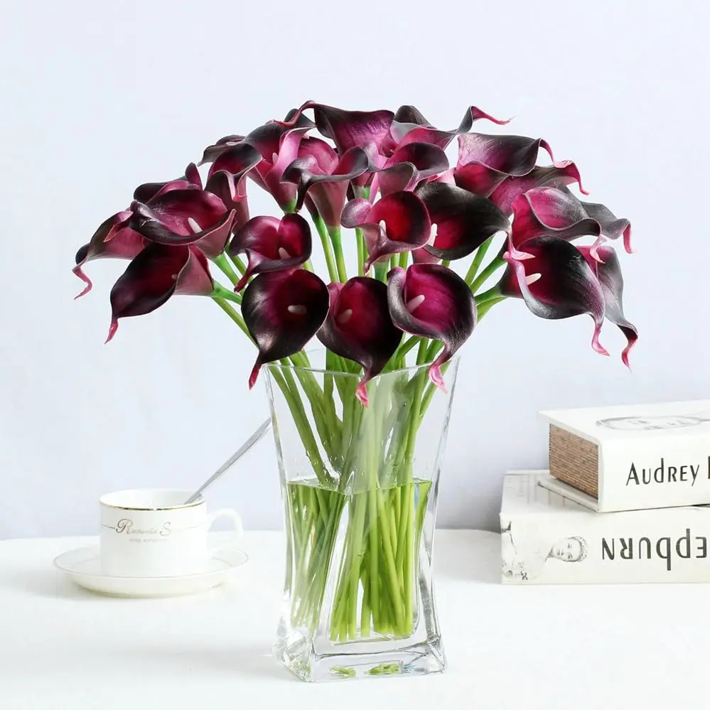 6PCS 인공 칼라 백합 꽃 PU 가짜 꽃 웨딩 부케 신부 DIY 꽃 실내 홈 룸 사무실 테이블 장식