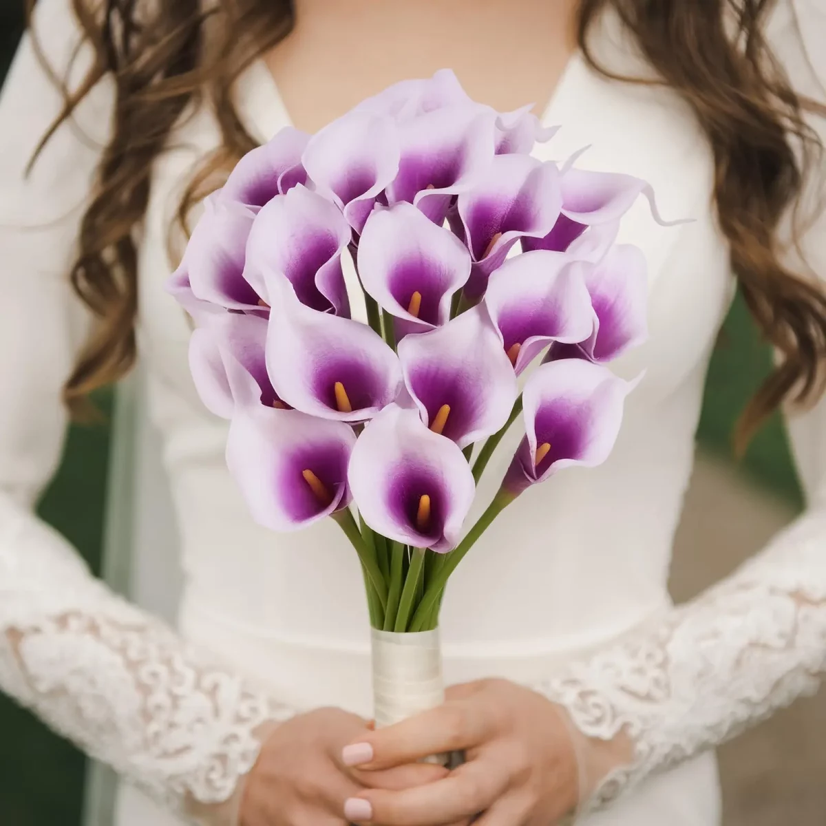 6PCS 인공 칼라 백합 꽃 PU 가짜 꽃 웨딩 부케 신부 DIY 꽃 실내 홈 룸 사무실 테이블 장식