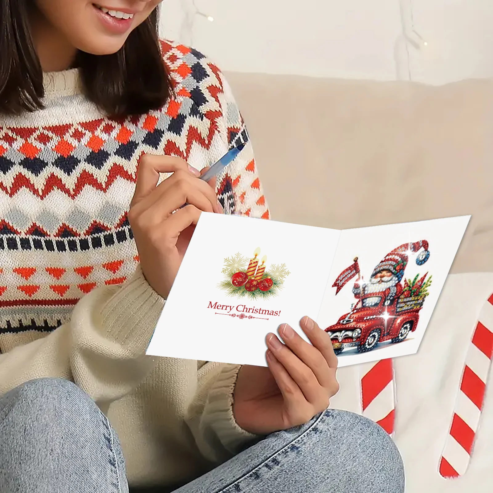 6피스 DIY 다이아몬드 페인팅 세트 크리스마스 라메 테마 인사말 카드, 축복과 소원, 독특한 디자인