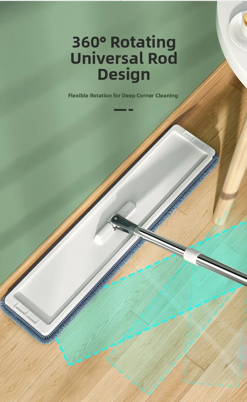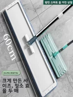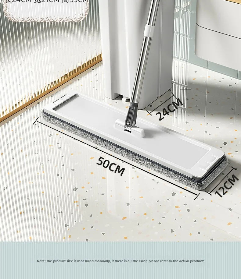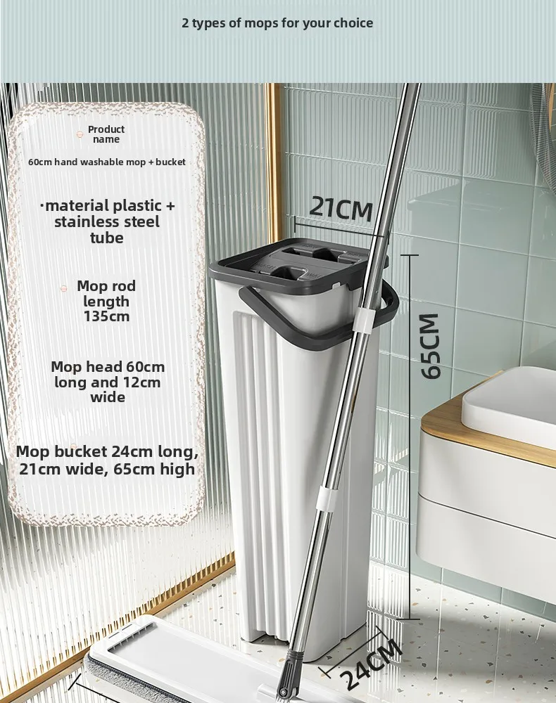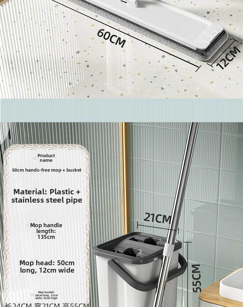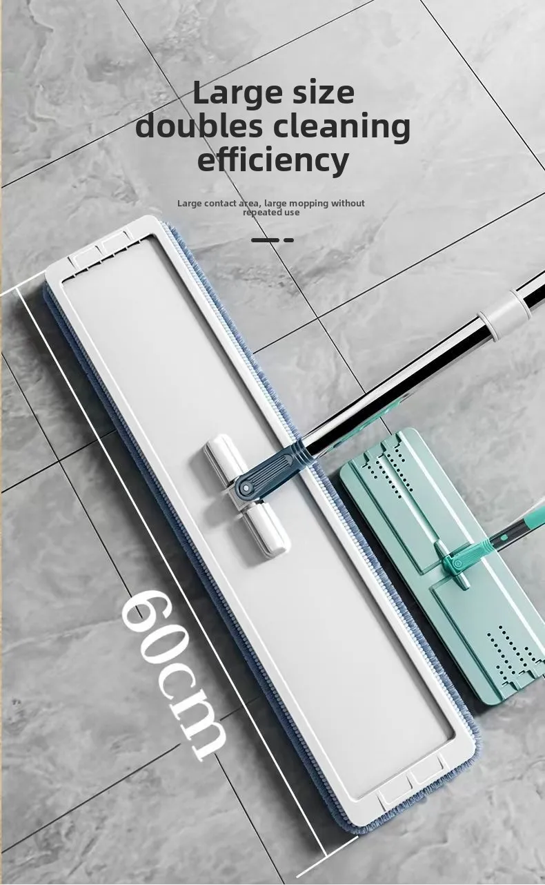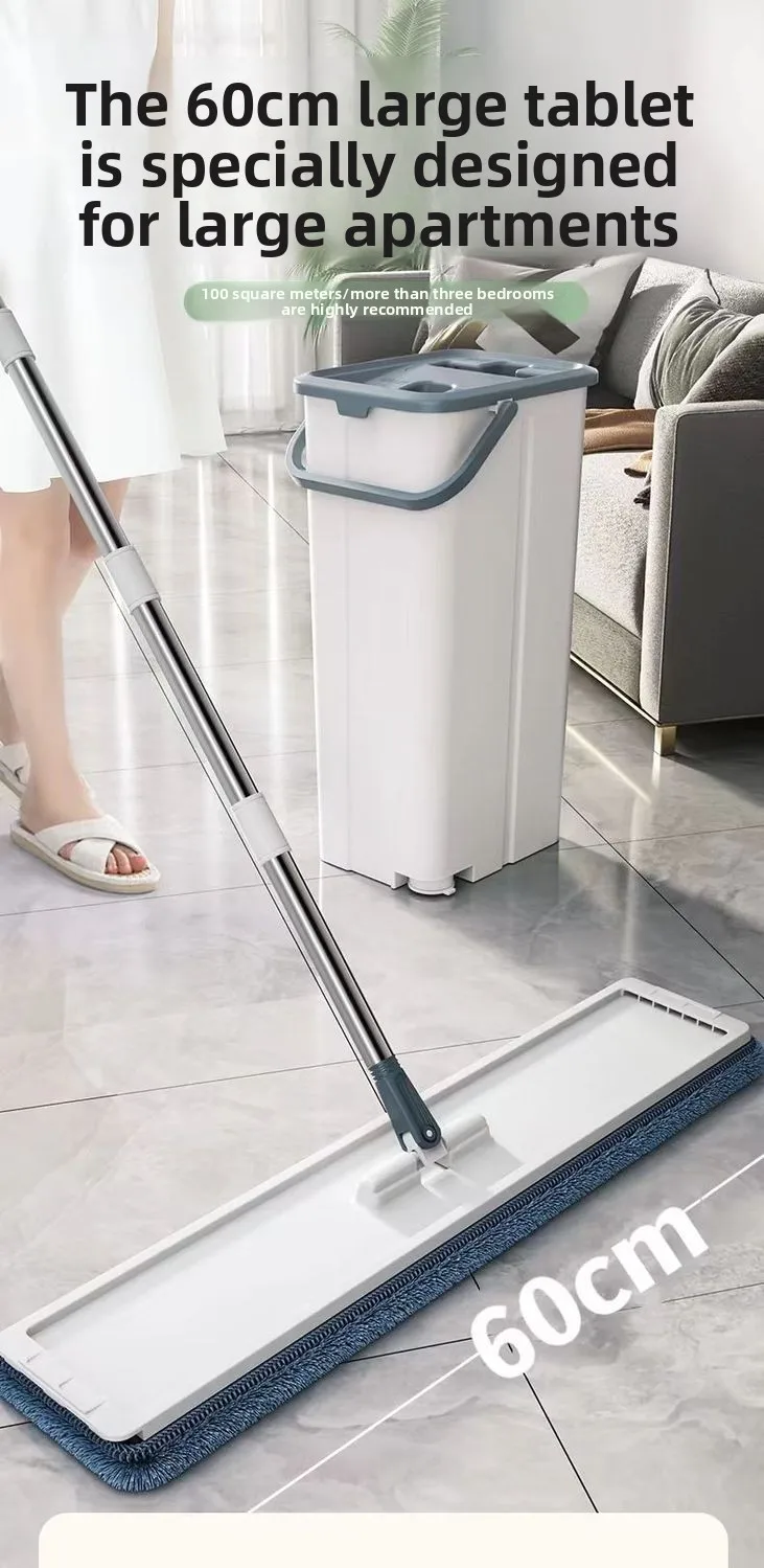 60cm 특대형 플랫 밀대 걸레 양동이, 물걸레/마른걸레 분리형, 초흡수성 섬유, 손세탁 불필요, 바닥 청소용 가정용 도구
