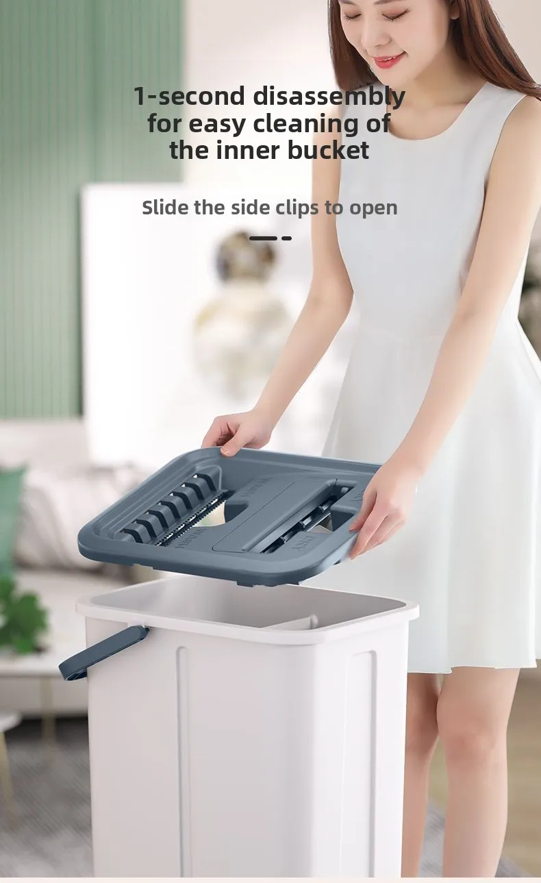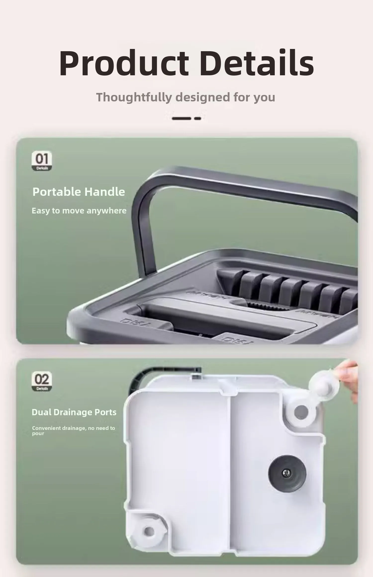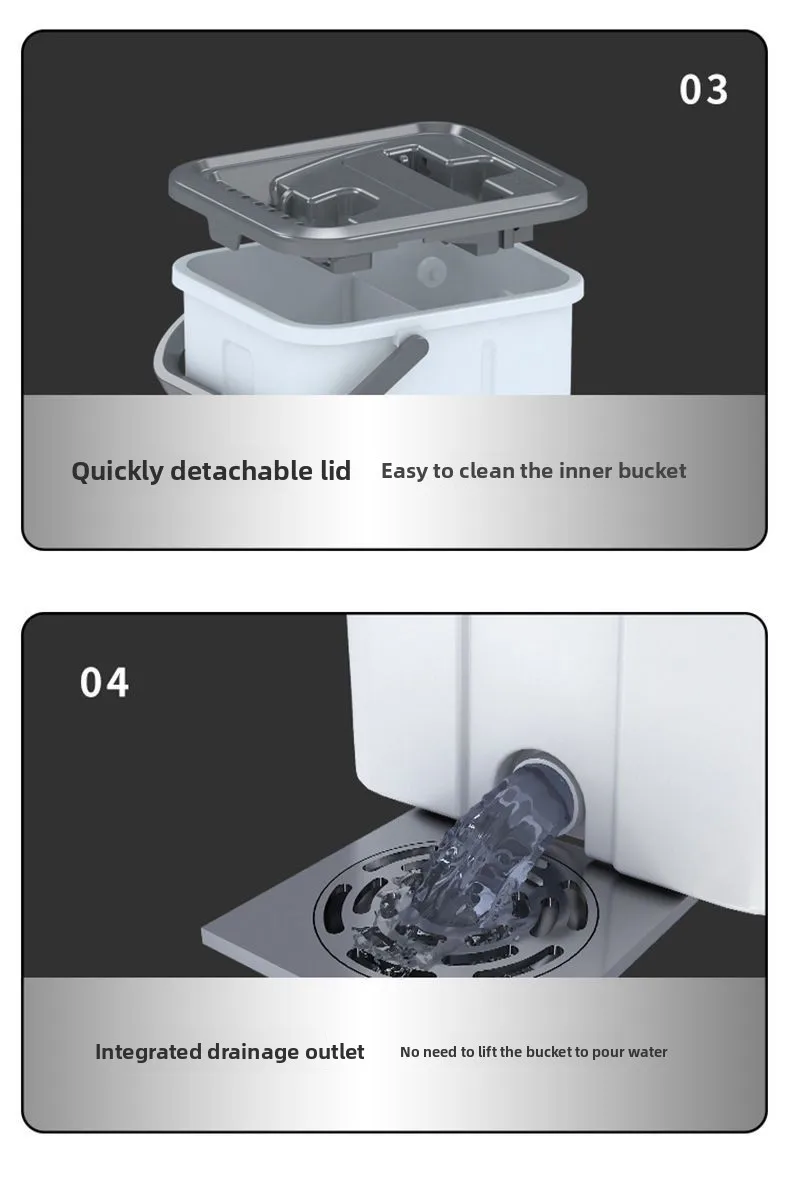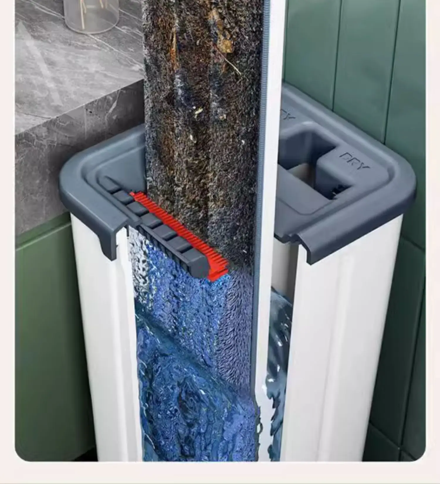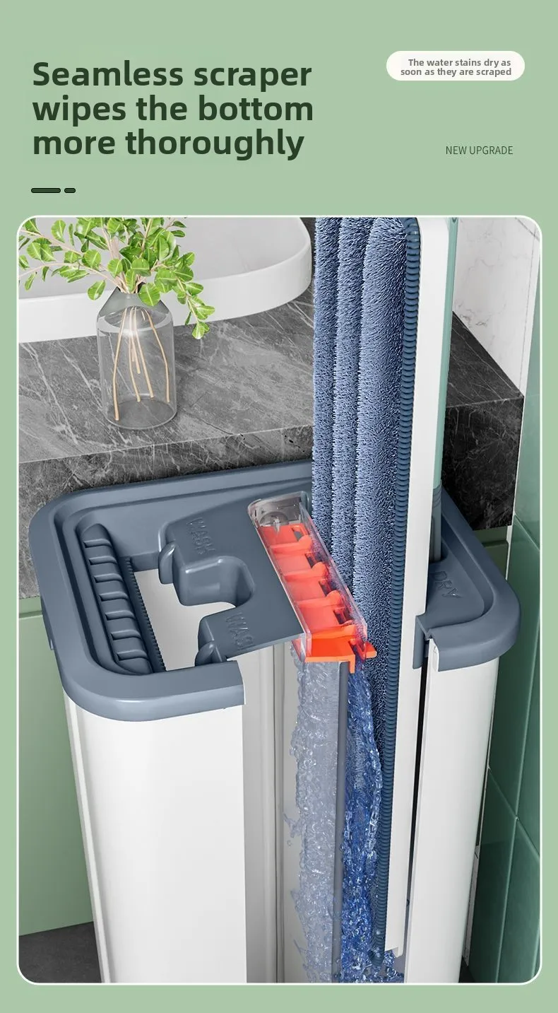60cm 특대형 플랫 밀대 걸레 양동이, 물걸레/마른걸레 분리형, 초흡수성 섬유, 손세탁 불필요, 바닥 청소용 가정용 도구