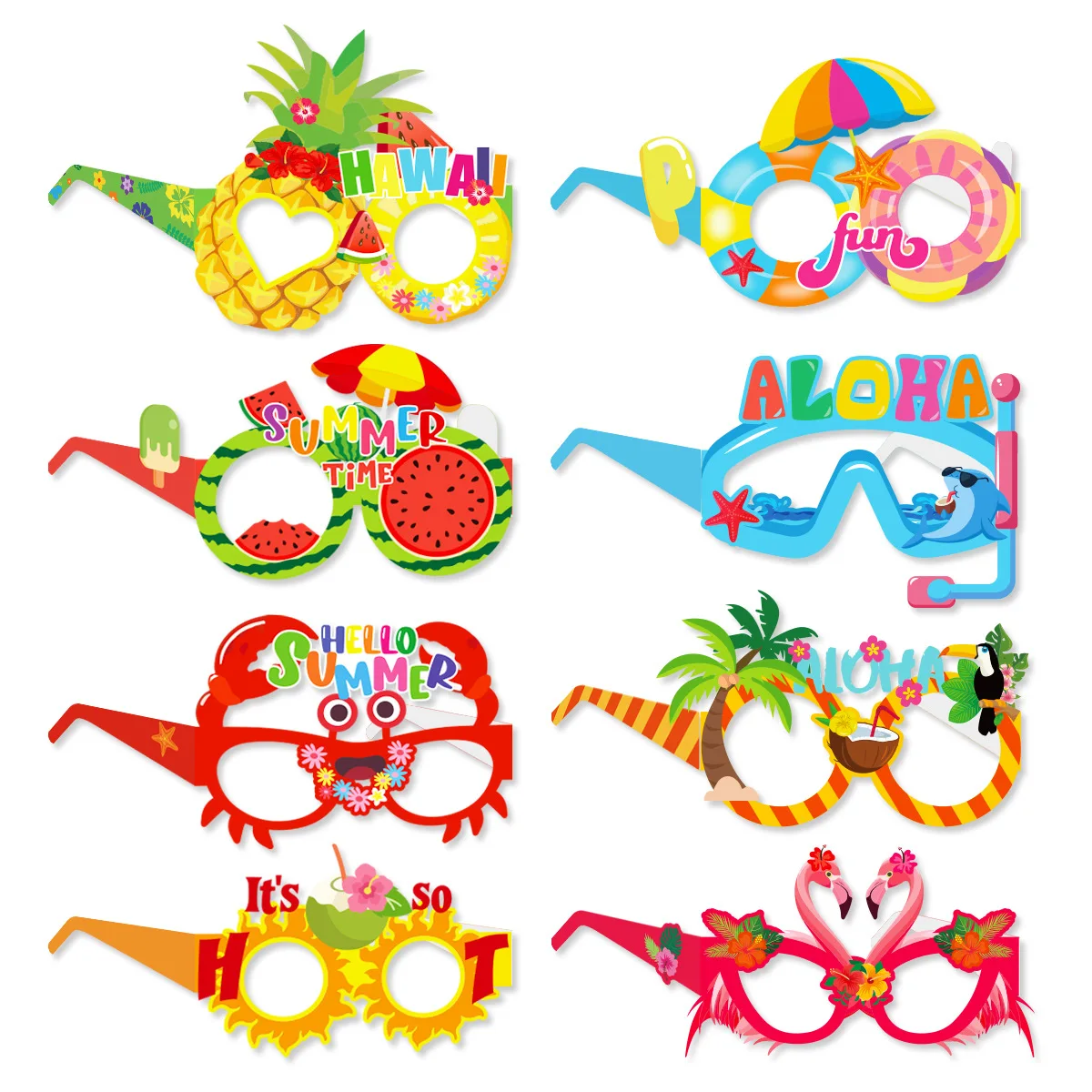 8PCS 하와이 사진 소품 안경 플라밍고 파인애플 재미 있은 해변 여름 하와이 파티 안경 장식