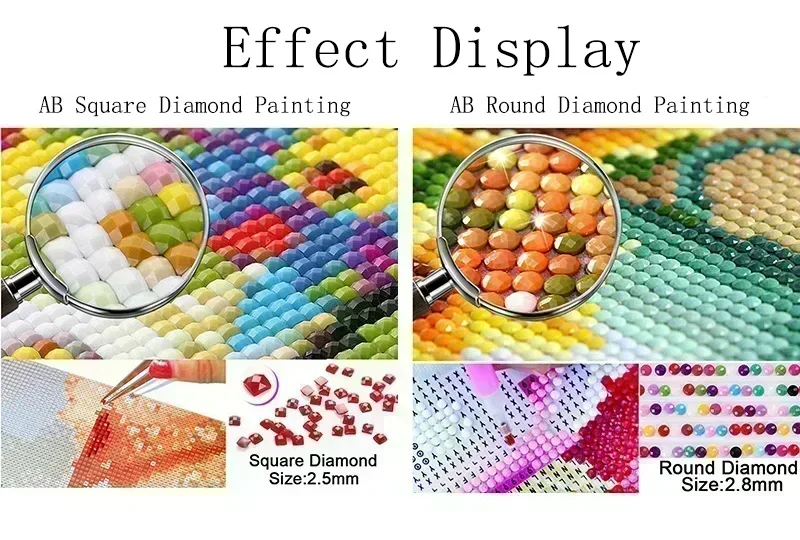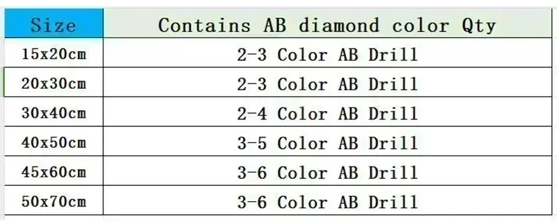 다이아몬드 페인팅 크기에는 AB 다이아몬드 색상이 포함되어 있습니다.