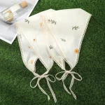 AWAYTR 베이지 꽃 머리띠 헤어 스카프 밴드 여성용 파티 모자를 쓰고 있죠 만화 프린트 두건 터번 헤어 밴드 헤드 피스