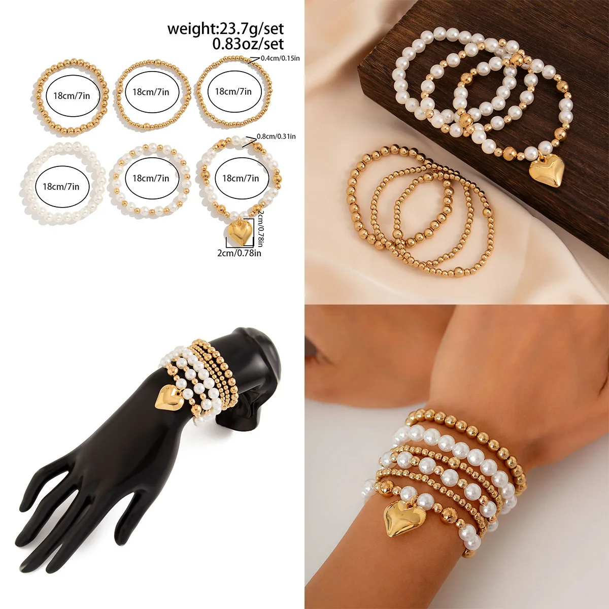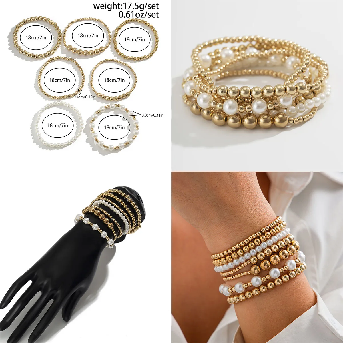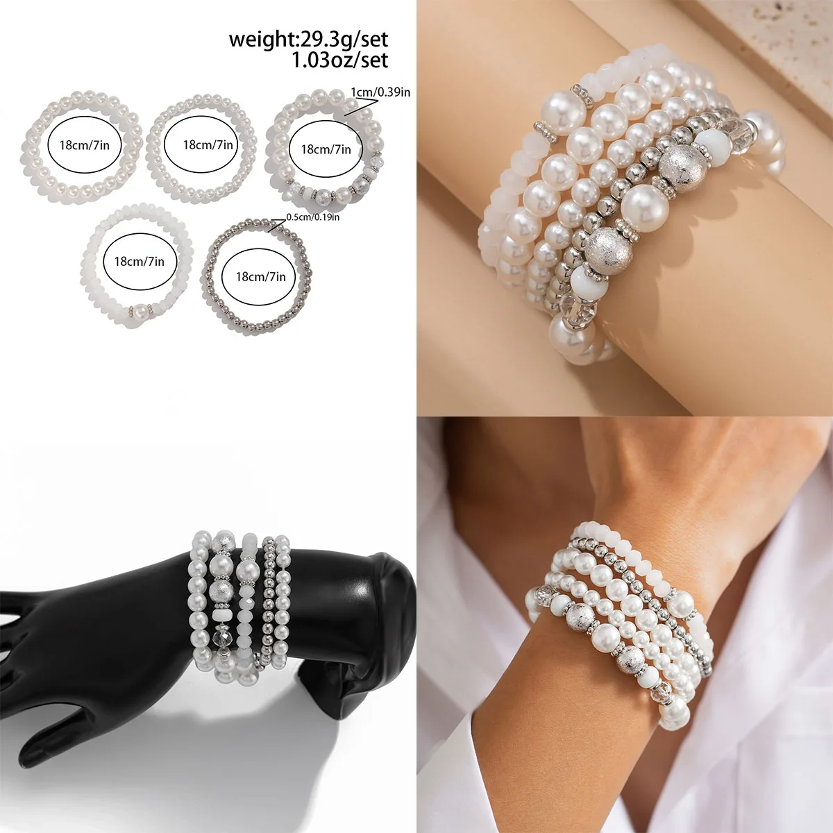 Boho 달콤한 모조 진주 혼합 색상 라운드 진주 팔찌 2025 여성 멀티 레이어 탄성 스레드 여자 패션 쥬얼리