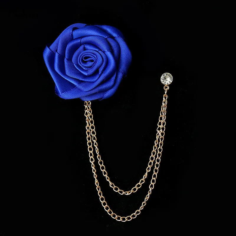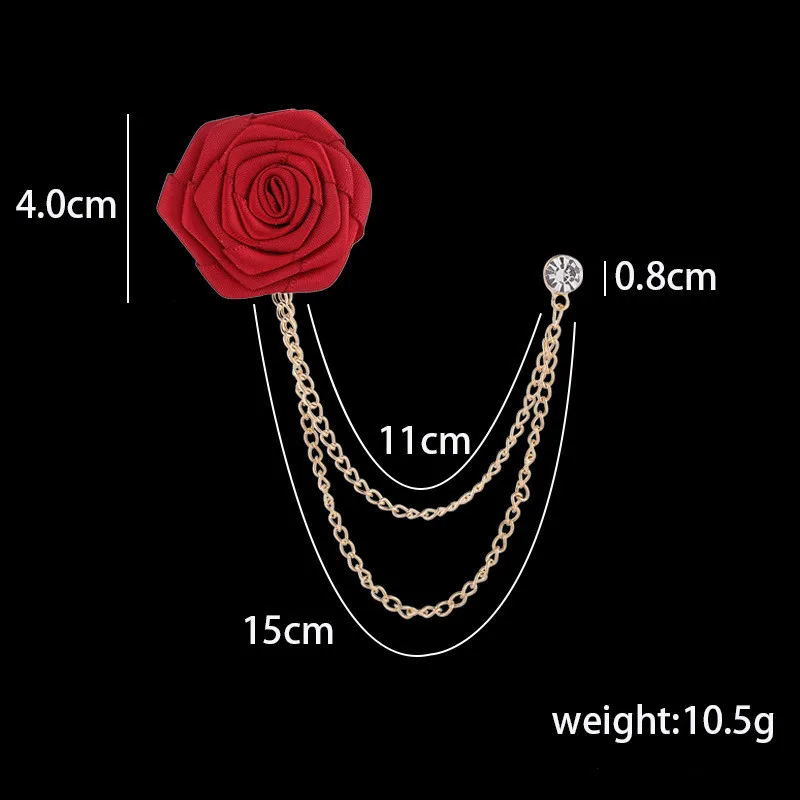 Boutonniere 웨딩 코사지 천, 수제 장미 꽃 브로치, 라펠 핀 배지, 술 체인, 남성 정장 액세서리