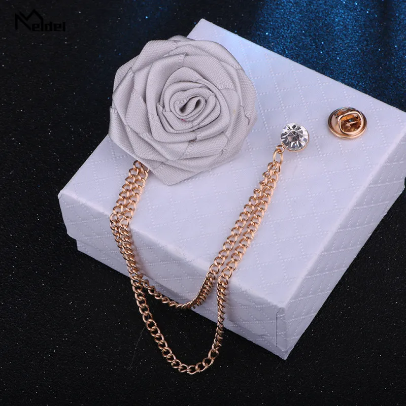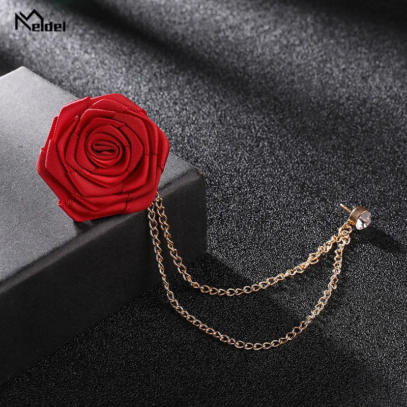 신랑 Boutonniere 웨딩 코사지 천 손으로 만든 장미 꽃 브로치 옷깃 핀 배지 술 체인 남성 정장 액세서리