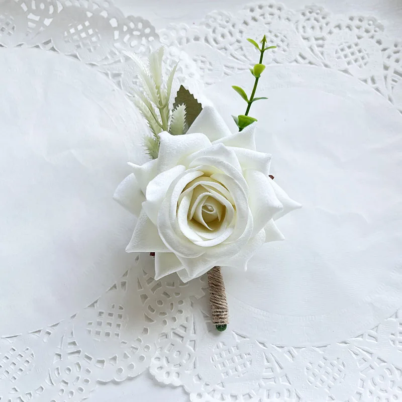 Boutonniere 코사지 웨딩 파티 액세서리 브로치 꽃 장미 인공 단추 구멍 남자 결혼 신랑 들러리 정장 옷깃 핀