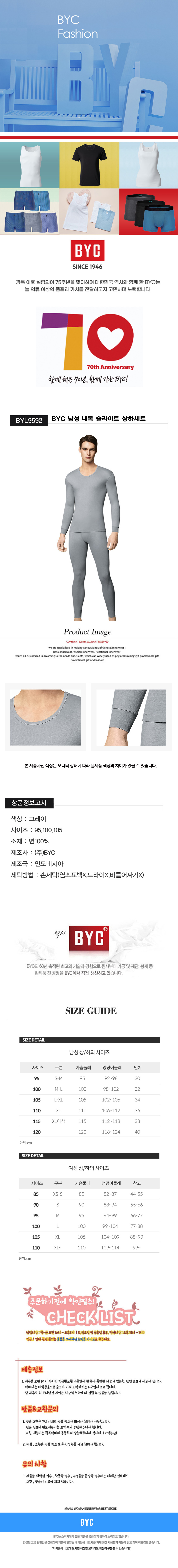 BYC 남성 내복 슬라이트 상하세트 L9592
