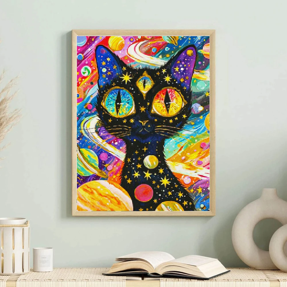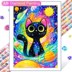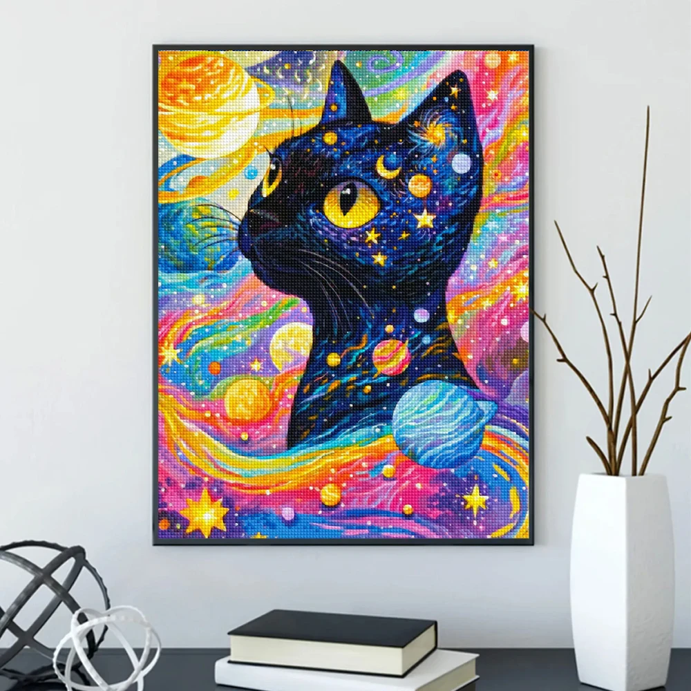 DIY 동물 AB 다이아몬드 그림 검은 고양이 전체 다이아몬드 모자이크 자수 별이 빛나는 하늘 아트 크로스 스티치 세트 수제 홈 인테리어