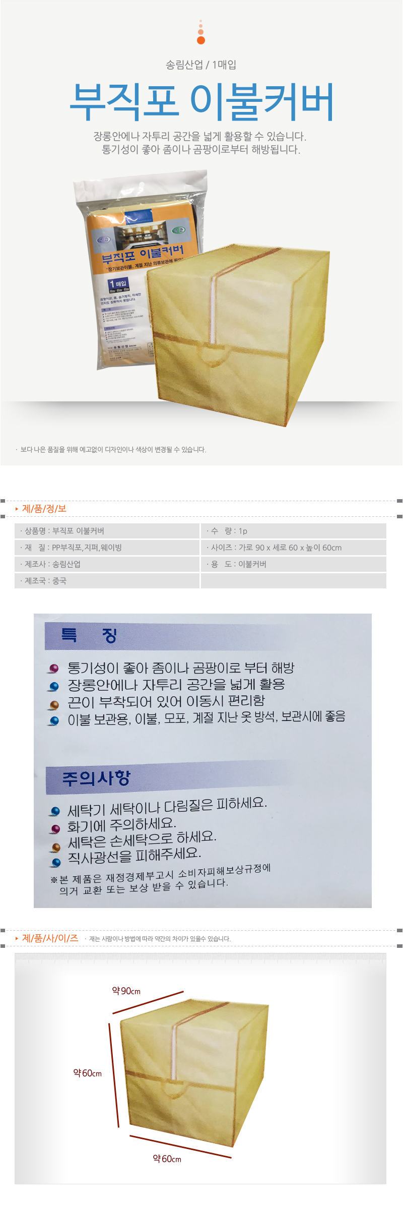 f송림 부직포 이불커버(90X60X60)이불보관함 수납함