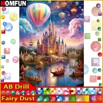 HOMFUN 요정 먼지 AB 라인 석 그림 크리스탈 장식 Diy 다이아몬드 그림 “풍경 성 Ballon” 3D 패턴 다이아몬드 자수