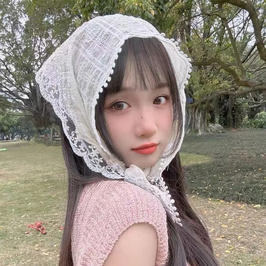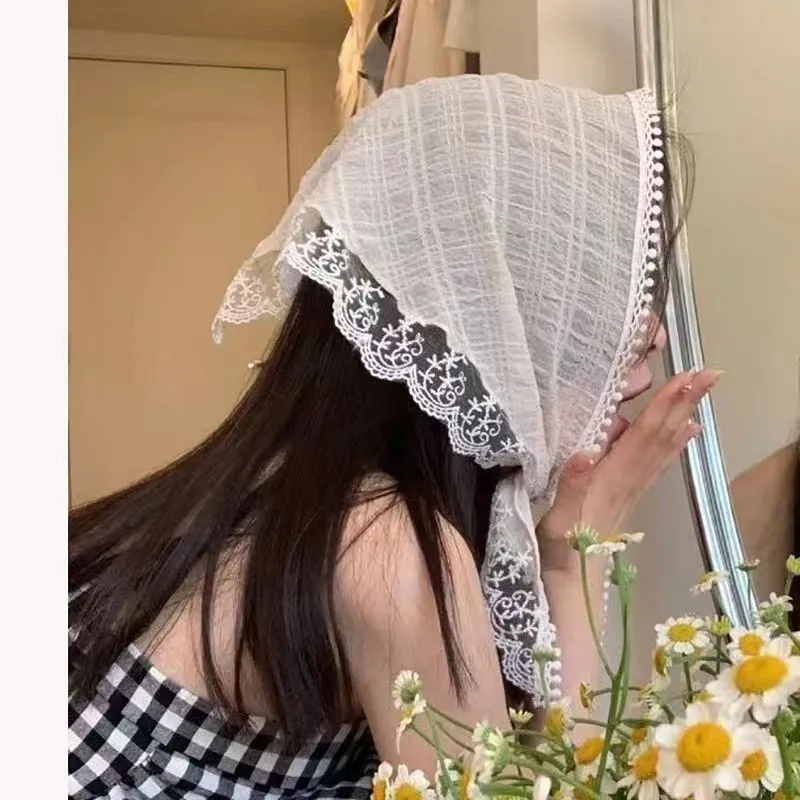 Ins 달콤한 레이스 헤어 스카프 여성 레트로 삼각형 헤어 밴드 스트랩 헤어 가방 Headscarf 모자 여행 사진 머리띠 터번 액세서리