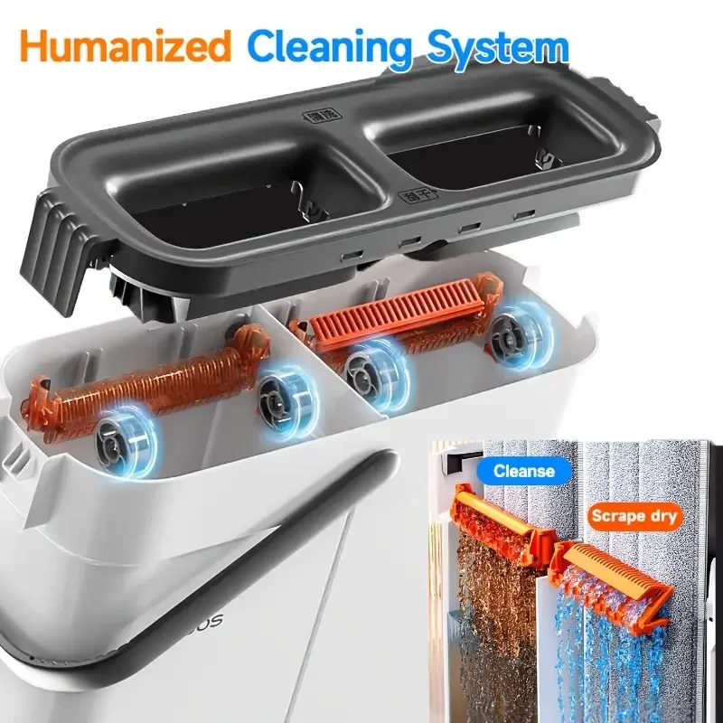 1.【새로운 업그레이드, 세척 및 건조】, 세척실의 먼지를 긁어내고 건조실의 물을 짜내고, 양동이로 핸즈프리 청소 걸레를 사용합니다.!참고: 강한 삽입 문제를 피하기 위해 걸레를 적시십시오!