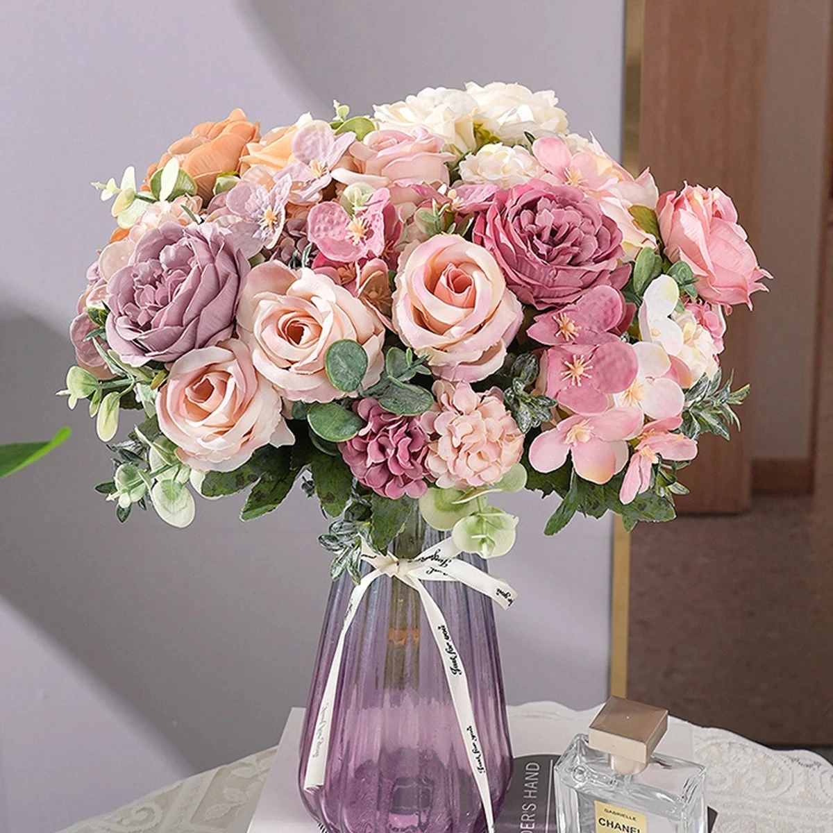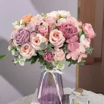 Kahaul 인공 꽃 고품질 실크 모란 화환 홈 장식 웨딩 신부 꽃다발 장식 용품 배열