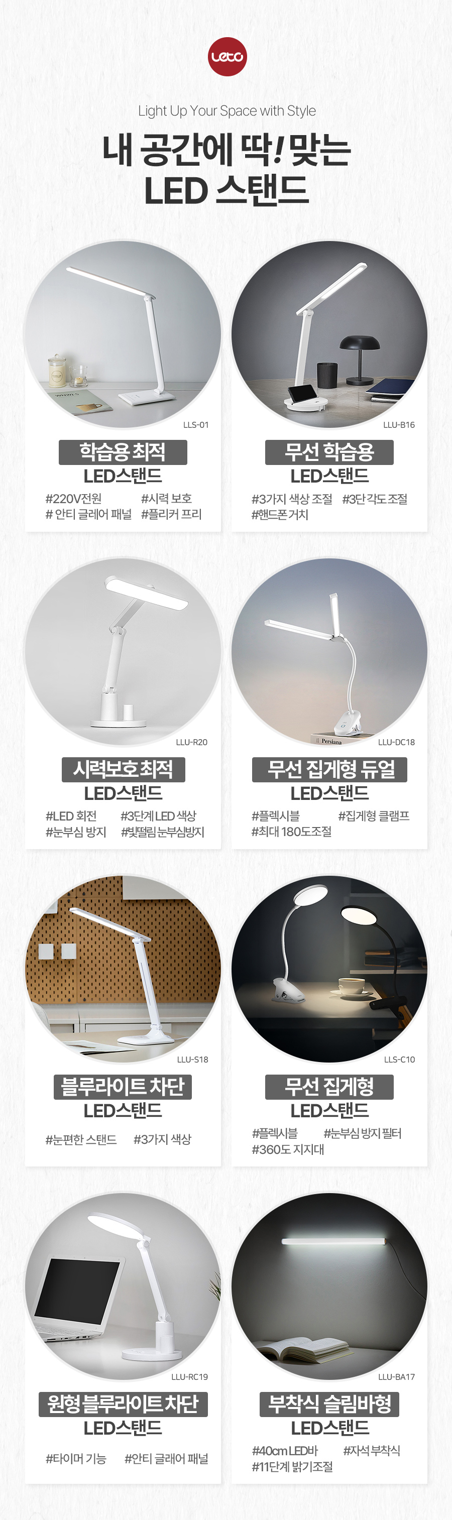 (LETO) 레토 학습용 LED 스탠드 책상 스탠드 조명 독서등 독서실 공부 스텐드 LLS-01