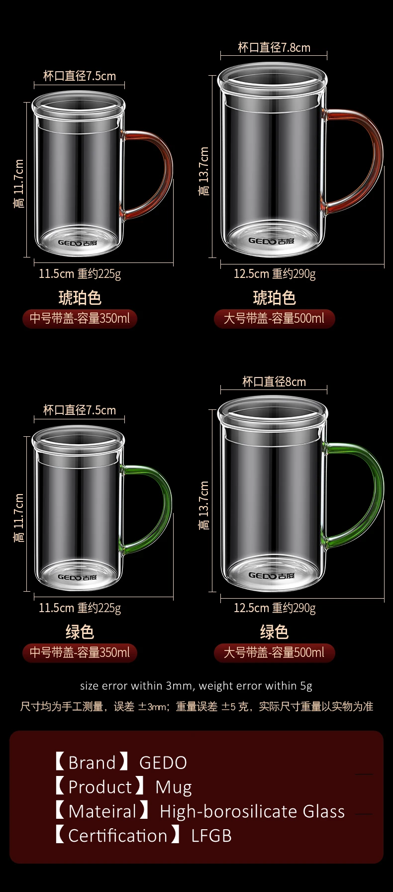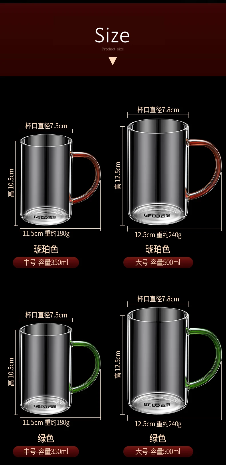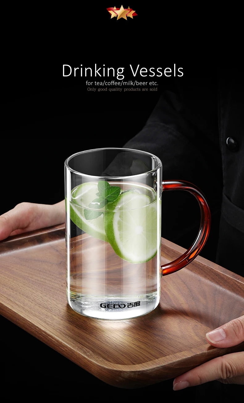 LFGB 인증 초경질 고붕규산 유리컵 -20 ℃ ~150 ℃ 사무실을 위한 저항적인 맥주 머그잔 투명 우유 커피 컵