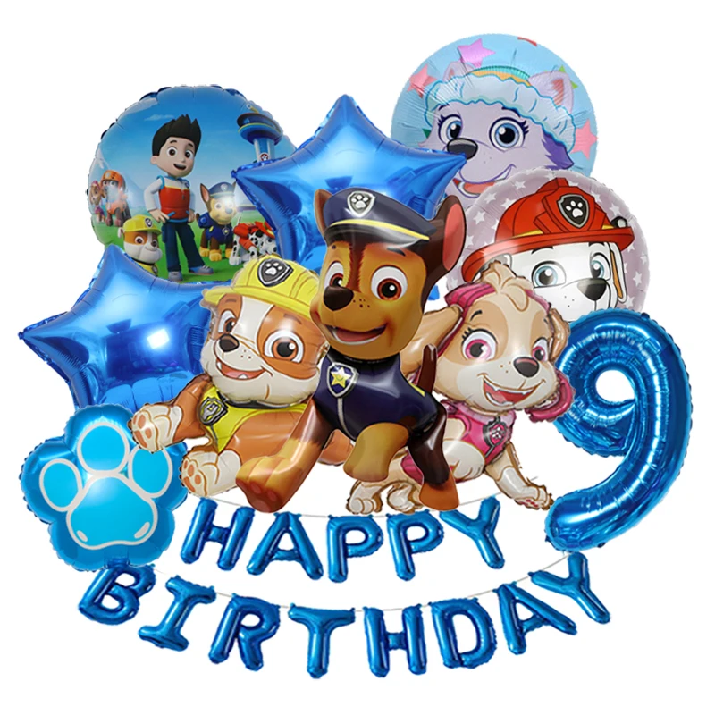 PAW 순찰 풍선 생일 배너 장식 알루미늄 필름 디지털 풍선 세트 개 체이스 마샬 스카이 키즈 파티 용품 장난감