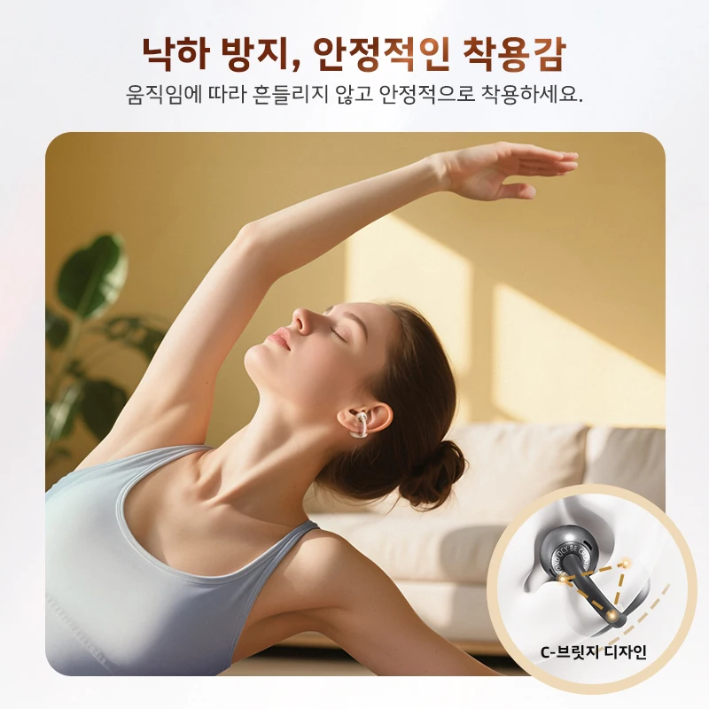 최상의 편안함을 위해 설계된 오픈형 이어폰은 초유연 티타늄 메모리 와이어를 사용하여 어떤 귀 모양에도 완벽하게 맞춰집니다. 구부리거나 비틀어도 항상 원래의 완벽한 형태로 돌아옵니다.