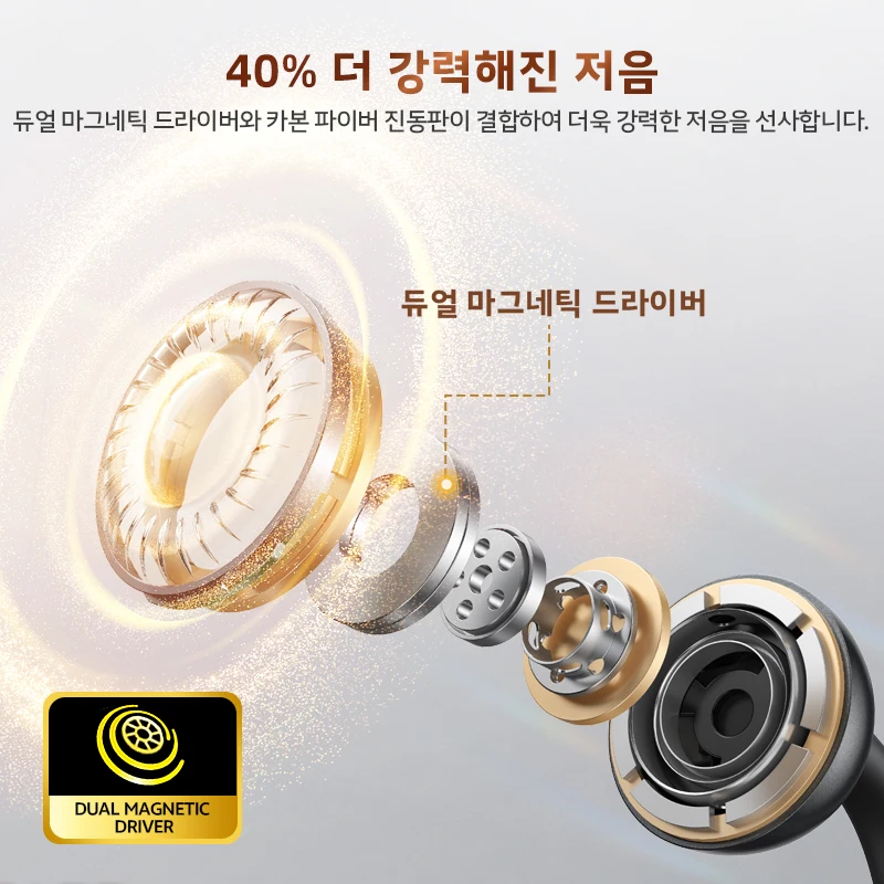 – 탄소 섬유 다이어프램을 갖춘 이중 자석 드라이버;