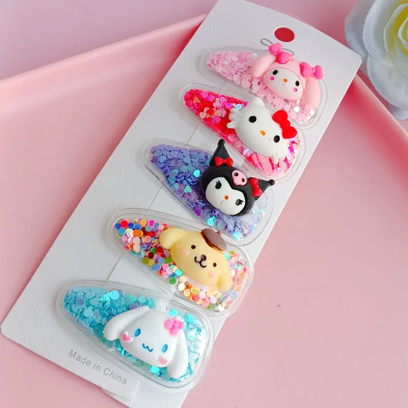 Sanrio 머리핀 Kawaii My Melody Kuromi Cinnamoroll 헬로 키티 헤어 클립 소녀 헤어 액세서리