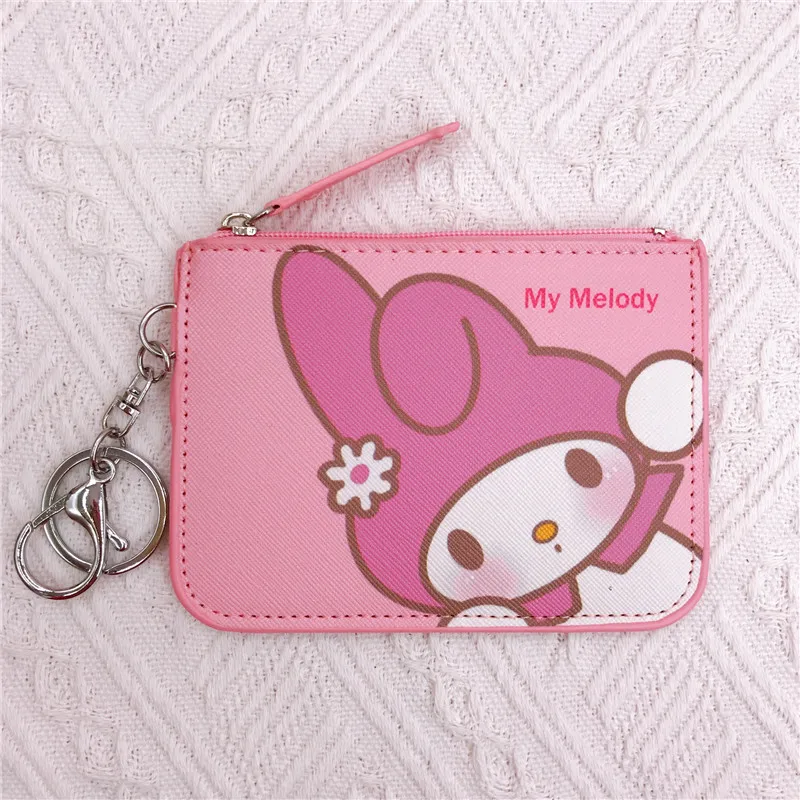 Sanrio Anime Kawaii 카드 가방 Kuromi 귀여운 키 체인 크리 에이 티브 헬로 키티 만화 지퍼 카드 홀더 소녀를위한 지갑 장식품