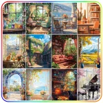 SDOYUNO 다이아몬드 그림 전체 키트 액세서리, 실내 풍경 장식 그림, DIY 5D 다이아몬드 그림 크로스 스티치 키트