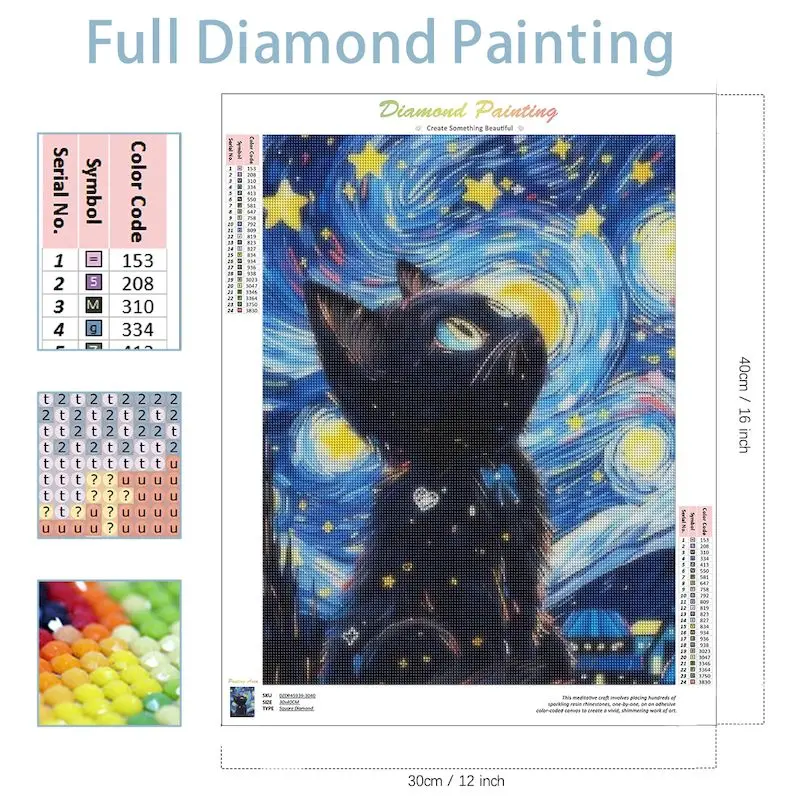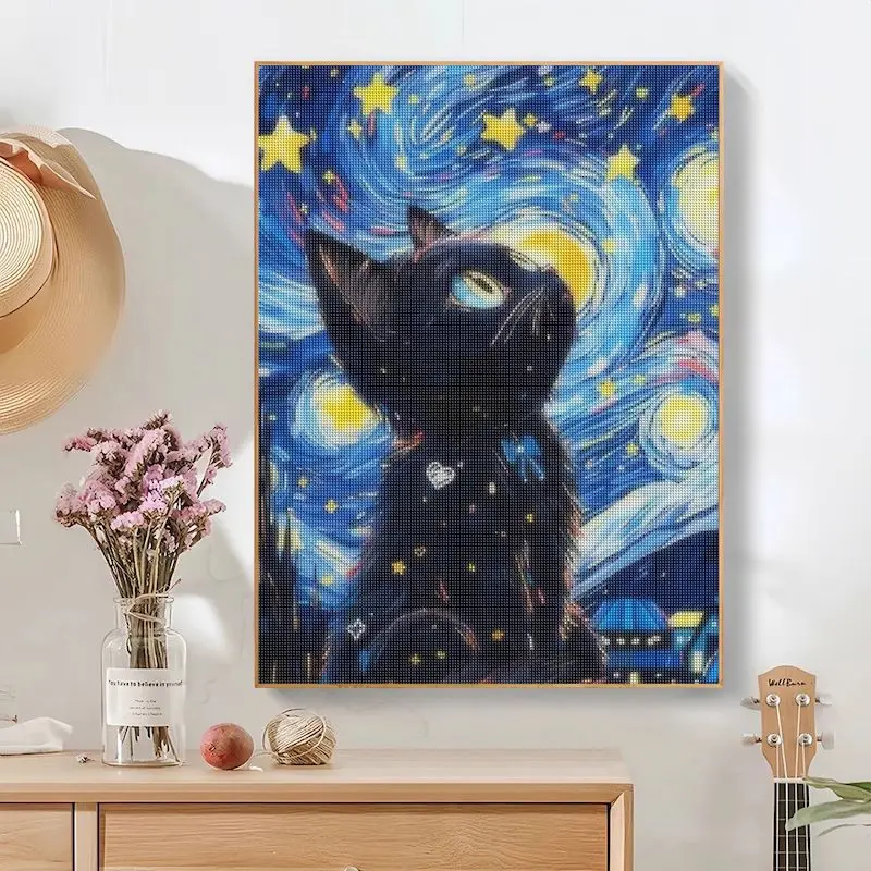 SDOYUNO 5D DIY 다이아몬드 페인팅 동물 고양이 풀 스퀘어 다이아몬드, 모던 별이 빛나는 하늘, 수제 제작 친구 선물, 홈 데코