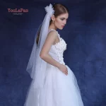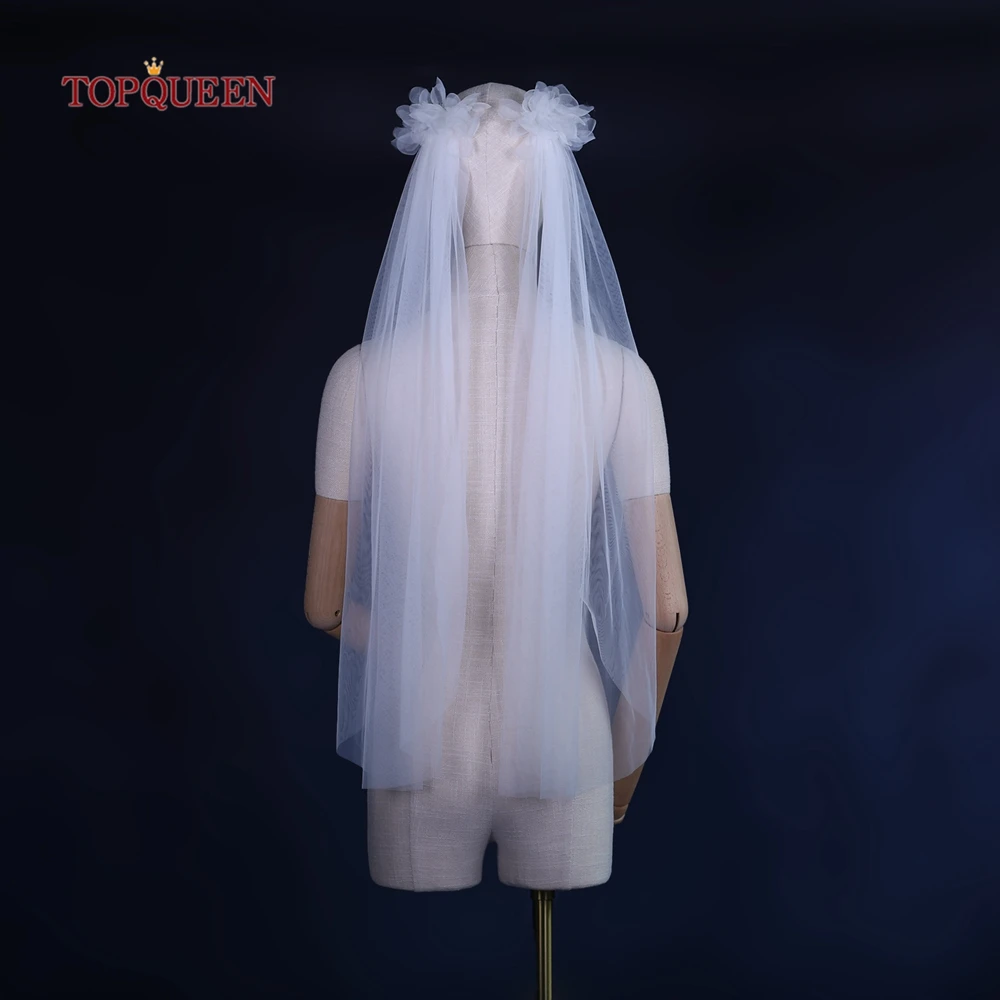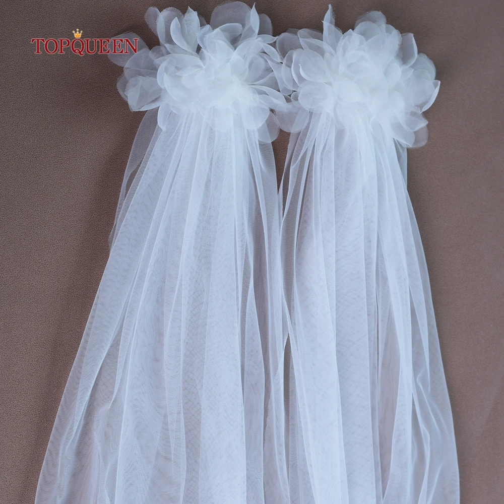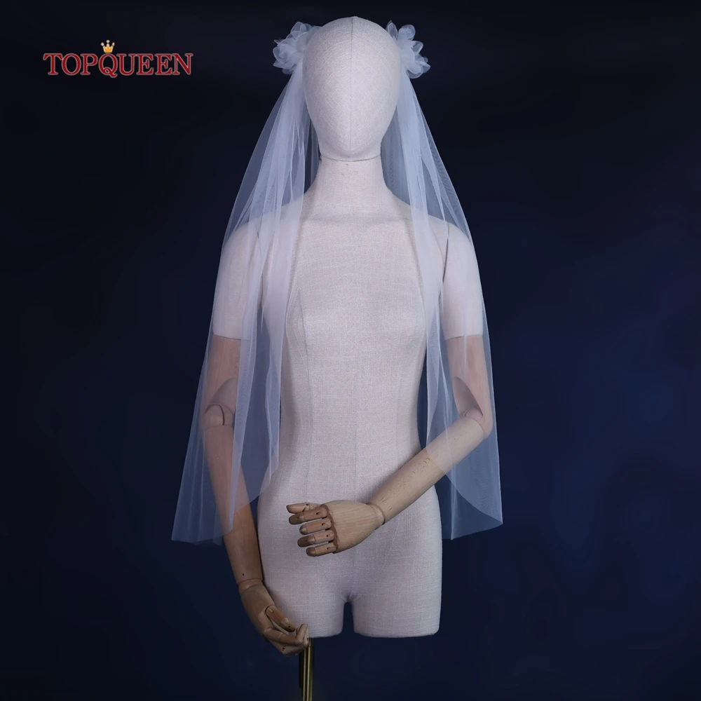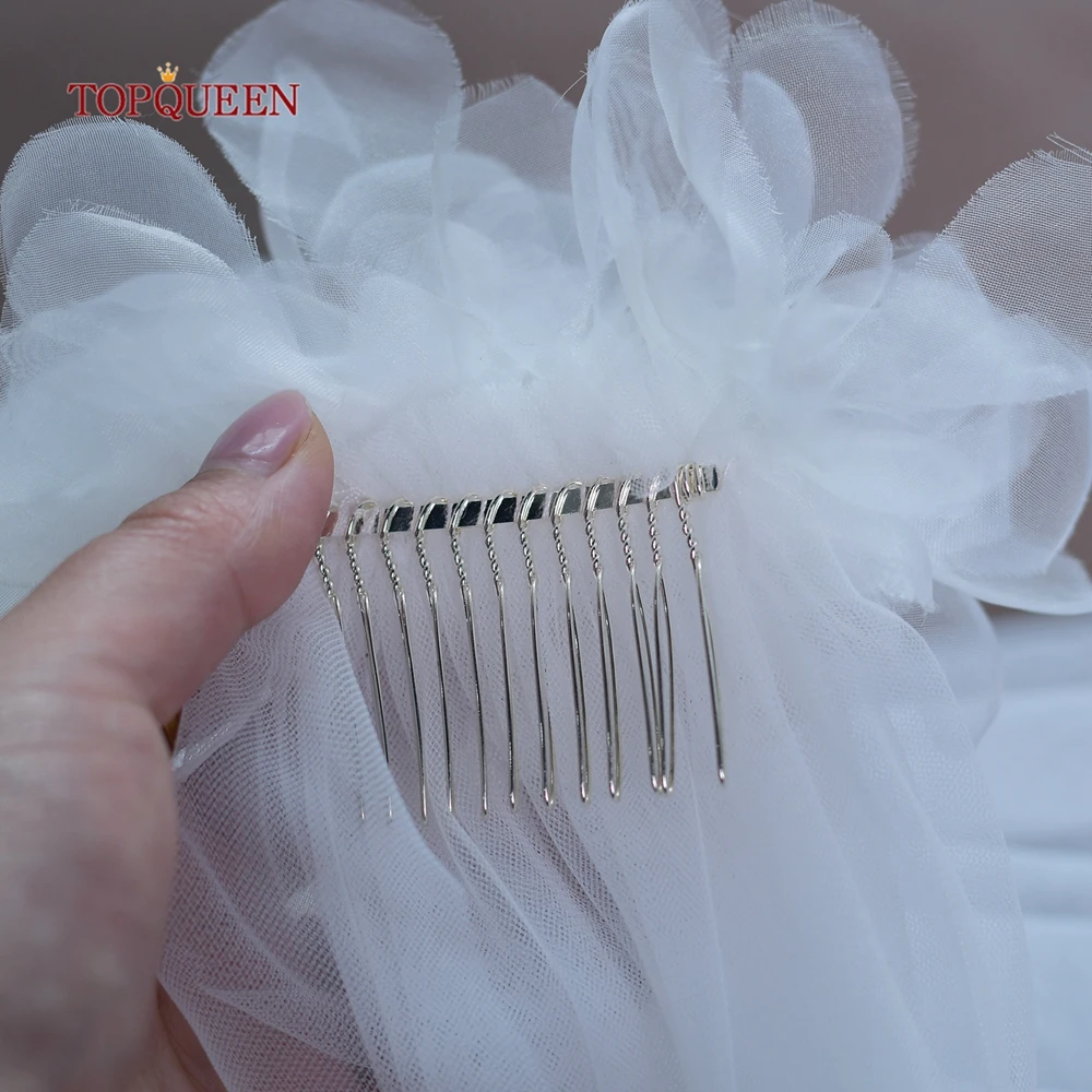 TOPQUEEN 심플 레트로 스타일 신부 베일 2 피스 리본 빗 웨딩 액세서리 Velos De Novia Flores