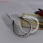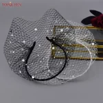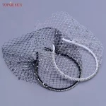 TOPQUEEN VA11 Birdcage Veil Blusher Veil White Black Veil Face Veil with Diamond Handband Bridal Veils with Blinkon Bridal Veils