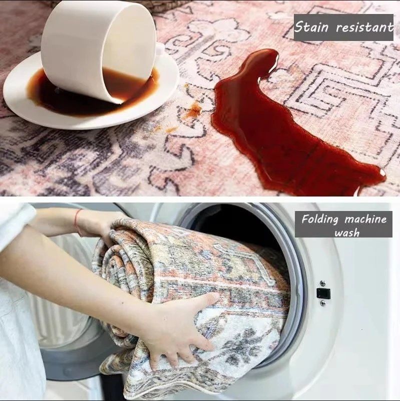 크림 스타일 거실 카펫, 럭셔리 고급 커피 테이블 러그, 미끄럼 방지 카펫, 따뜻한 색상, 침실 넓은 영역 러그