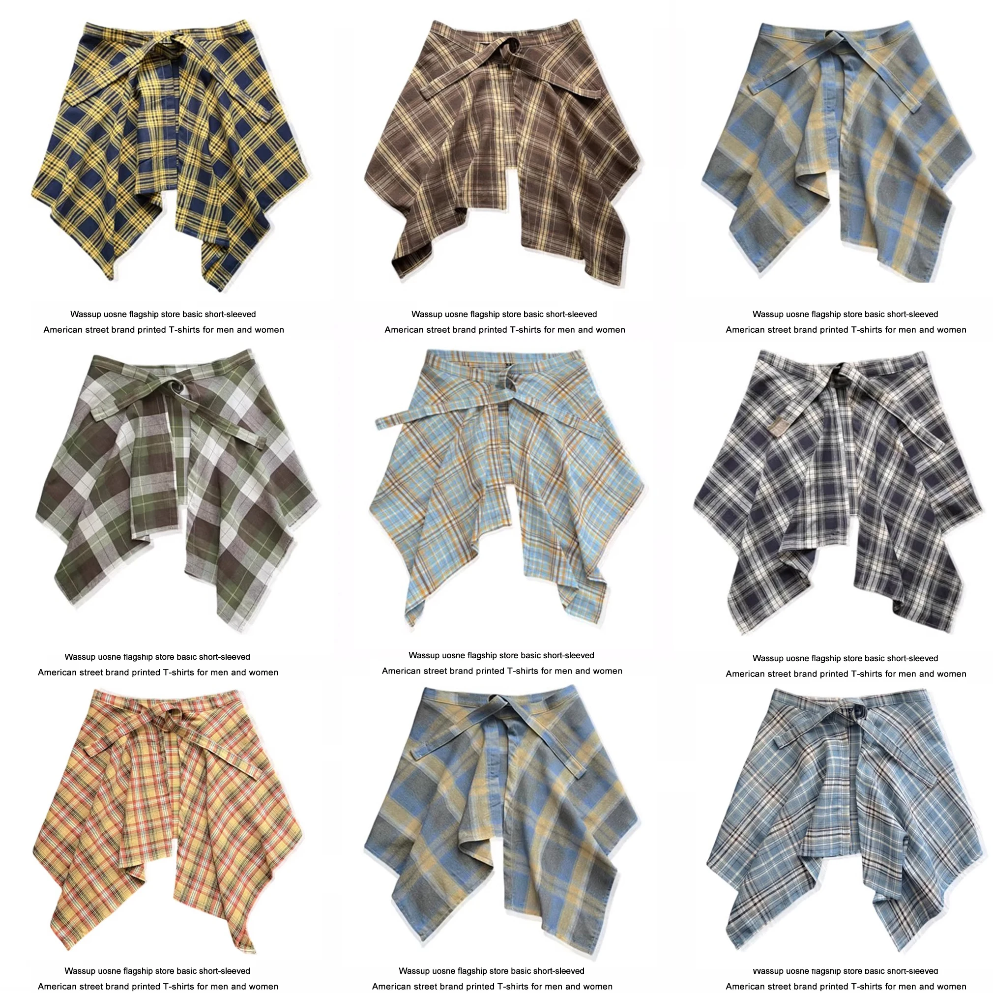 WASSUP 다채로운 격자 무늬 엉덩이 커튼 원 사이즈 맞는 허리 벨트 남성 셔츠 소녀 스타일 청소년을위한 다목적 코튼 벨트