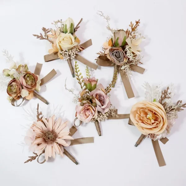 YO CHO Boutonniere 웨딩 코사지와 Boutonnieres 핑크 장미 실크 꽃 Boutonnieres 신랑 남성 결혼 웨딩 액세서리